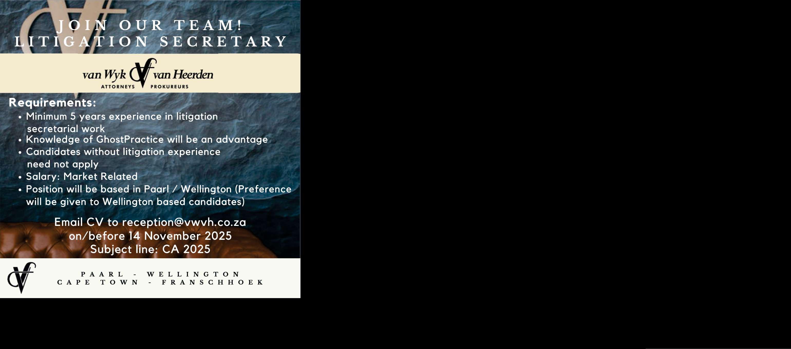 Nceda, qwalasela okokuba ukufakwa kwezichasi kuyaphelelwa ngomhla weshumi elinesithoba kweyoMnga 2025.Isichasoesingenisweemvenikwexeshaasisayikwamkelwanangasiphinaisizathu. Ukuba unemibuzo nceda udibane no Mnu.I Fortuin (021 807 4534) okanye Mnu. M Y Gaidien (021 807 4792) kunye no Mnu. J Lawrence (021 8074825). GQ JOHAN LEIBBRANDT, UMANEJAL WESIXEKO Paarl Post 30/10/2025 000000000-PL301025