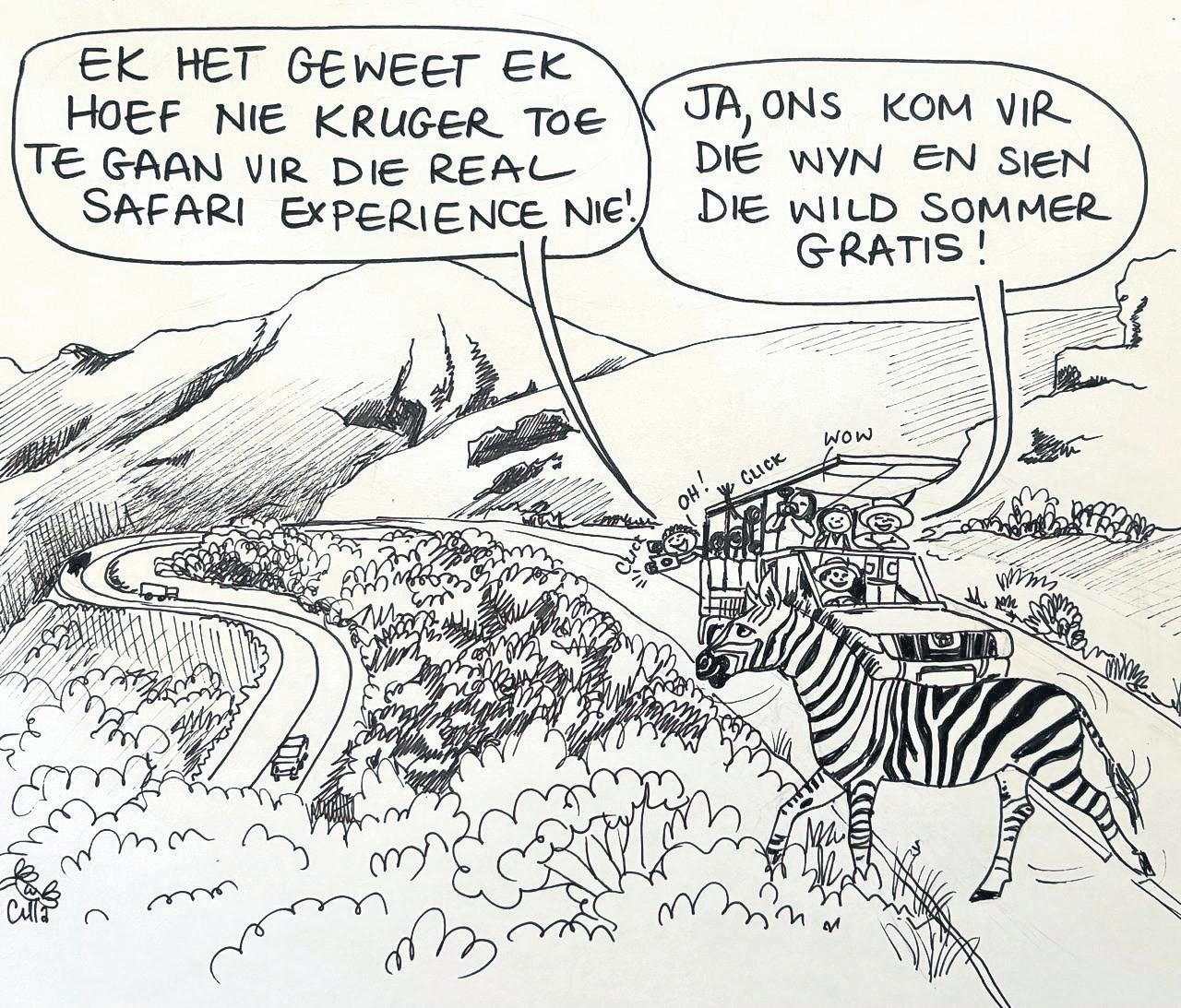 ’n Kaapse bergkwagga, dwaal tans in Franschhoekpas rond.