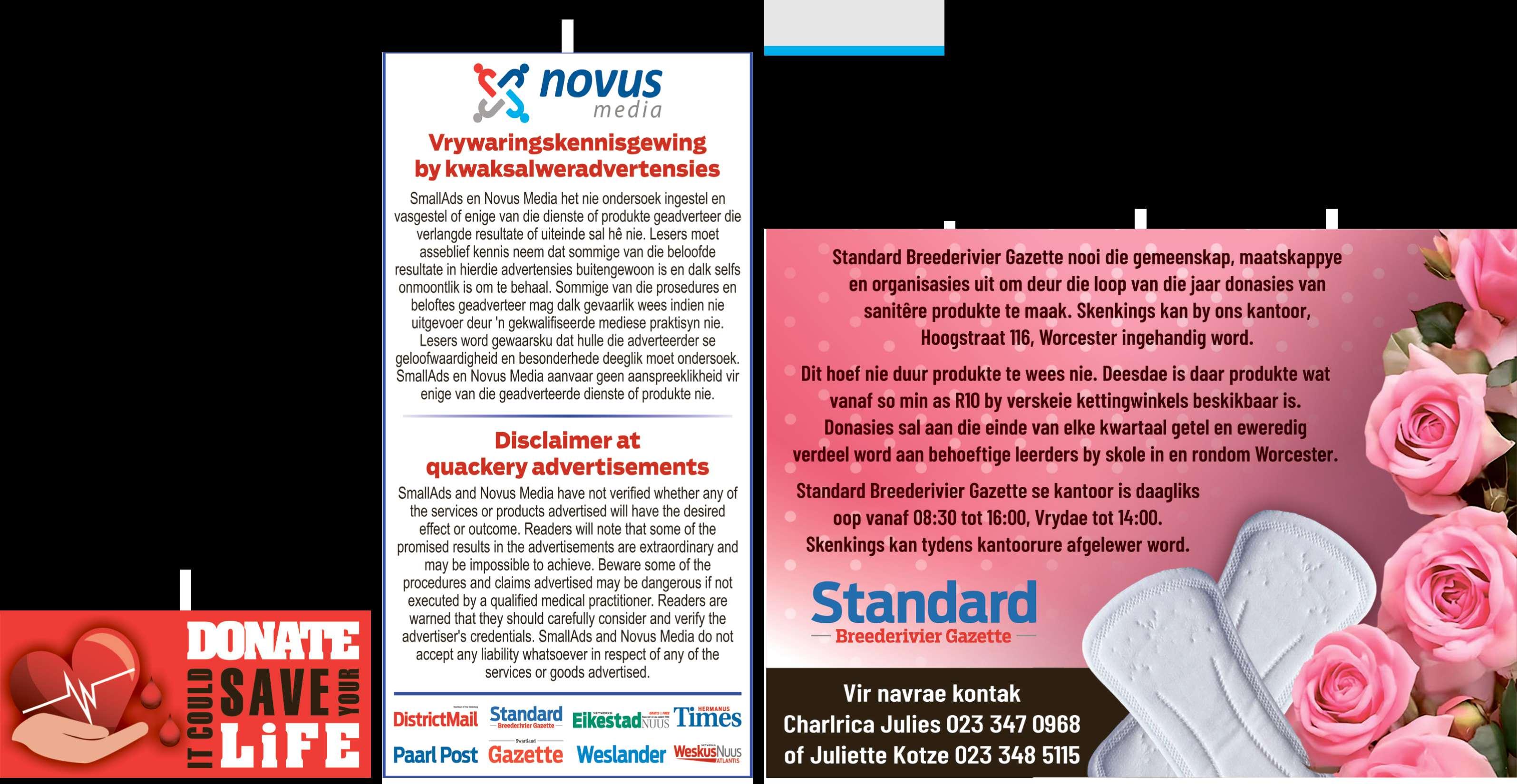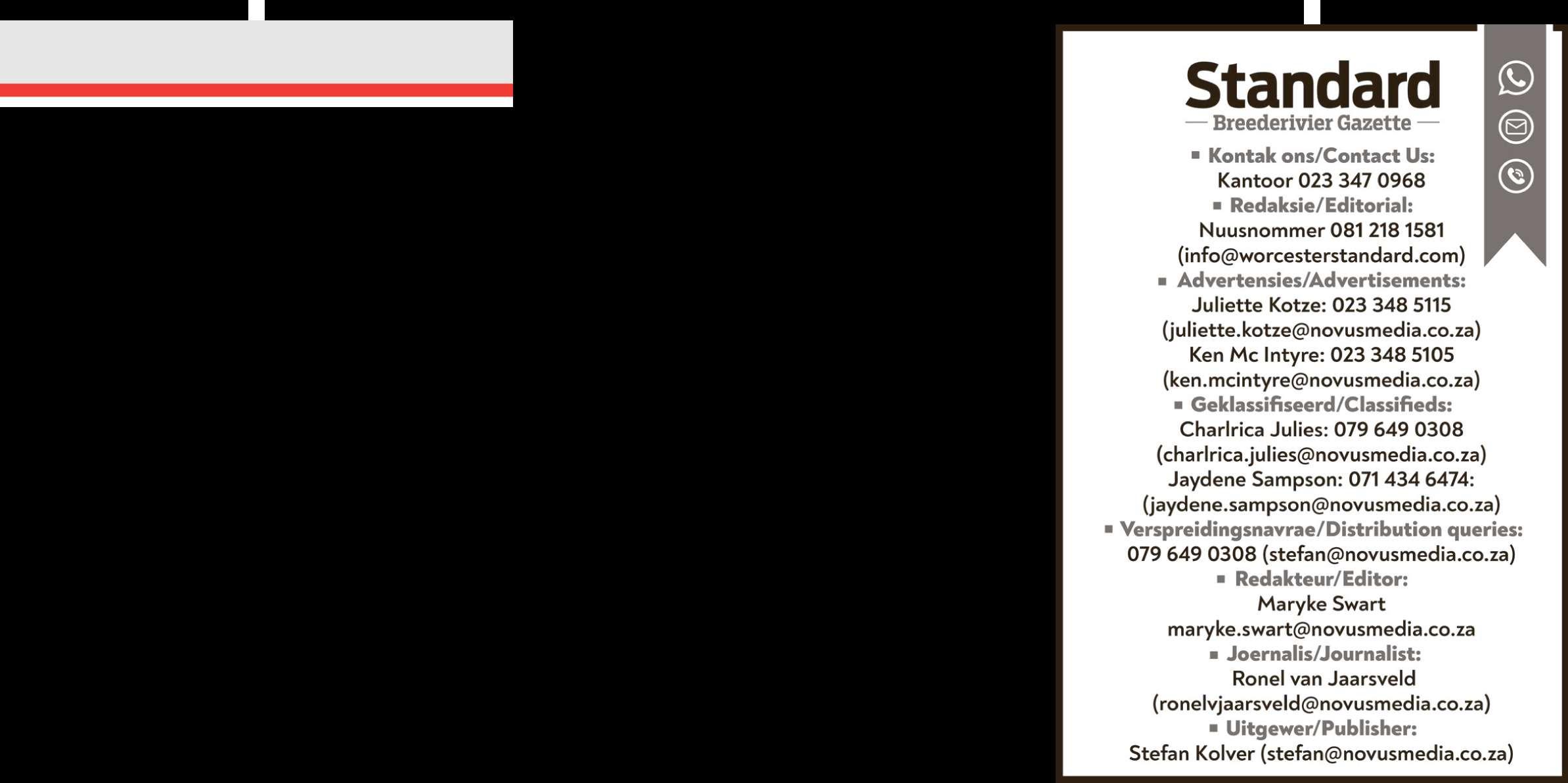 Stuur inskrywings na: info@worcesterstandard com Deadline/Spertyd: Mondays/Maandae voor 12:00.
