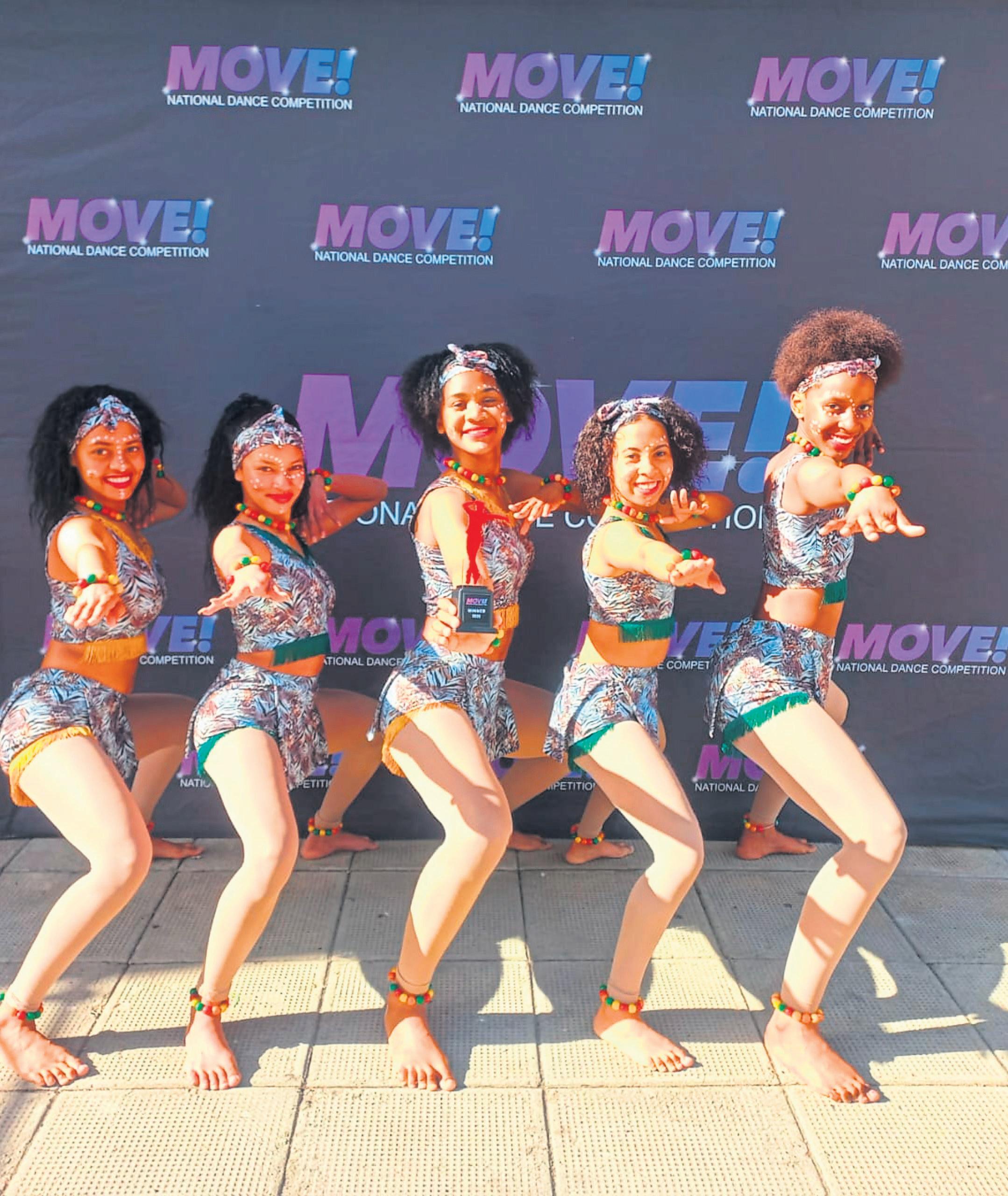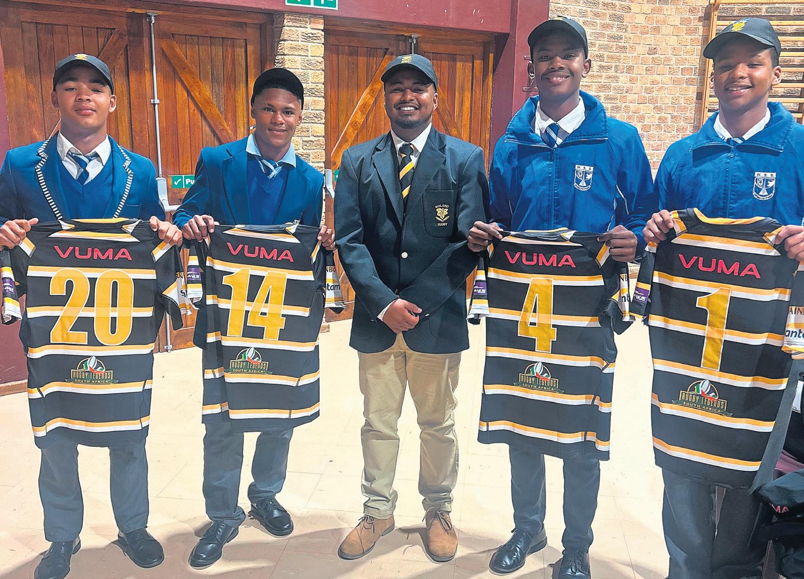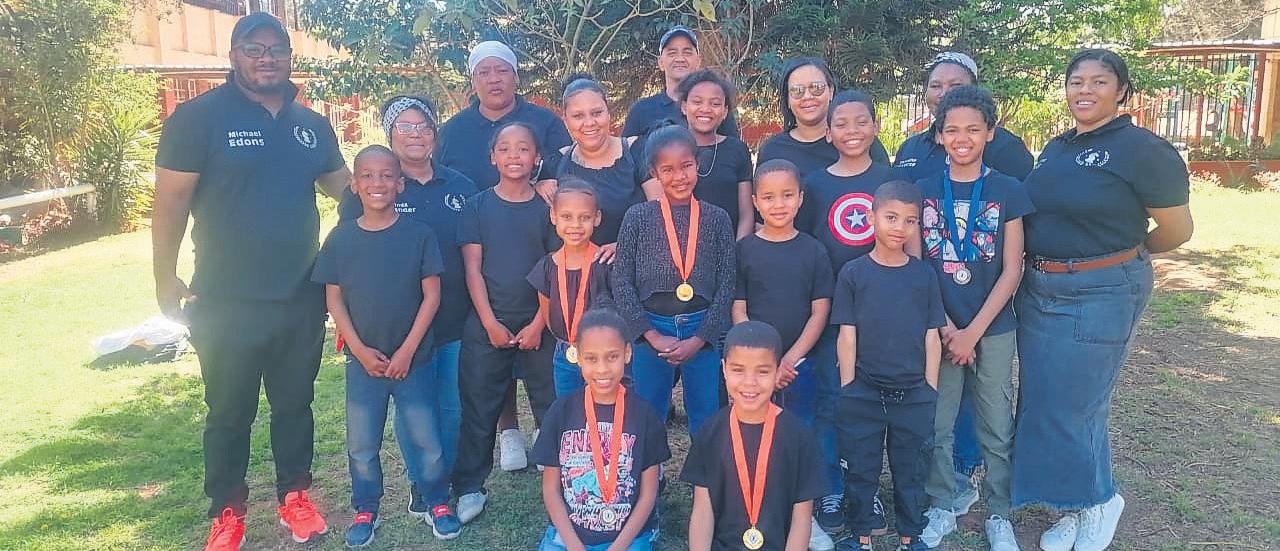 Agter is Erno Wepener en Madeline Kriel (onderwysers aan die Pionierskool vir Siggestremdes), wat die leerders begelei en ondersteun het. Voor staan (van links) Walter Pienaar, Jaco Kriel, Danelize Venter en Kiana Reynecke.