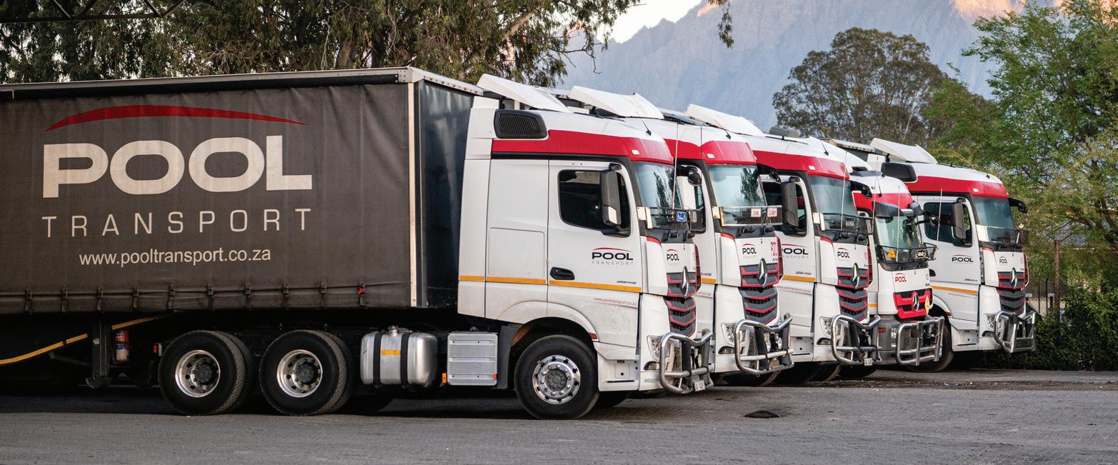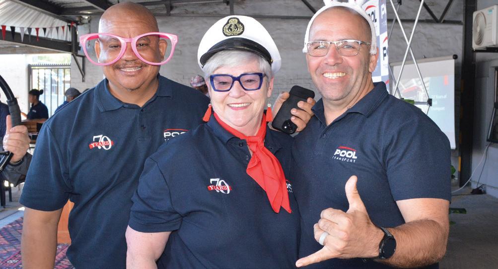 gende geslag dieselfde waardes en kultuur sal uitleef – en dan sal die Pool-sous bly roer,” sê hy met ’n glimlag. Hendrienne Pool, menslike hulpbronbestuurder, glo dié kultuur begin by die regte ingesteldheid. “Dis nie altyd wat jy kan doen nie, maar die houding en ingesteldheid waarmee jy opdaag,” sê sy. “As jy ’n passie het vir werk, as jy oplossings soek en jou nie deur probleme laat onderkry – dít is die mense waarna ons soek en wat ons by Pool Transport aanstel. Die res, soos tegnologie, kan ons jou leer, maar passie kan niemand vir jou gee nie.” Pool Transport is al sewe dekades ’n baken van trots, volharding en veral van mense wat glo in wat hulle doen. Die pad vorentoe lê oop met dieselfde waardes wat die maatskappy sedert 1955 dryf: harde werk, nederigheid en die onuitputlike Pool-gees.