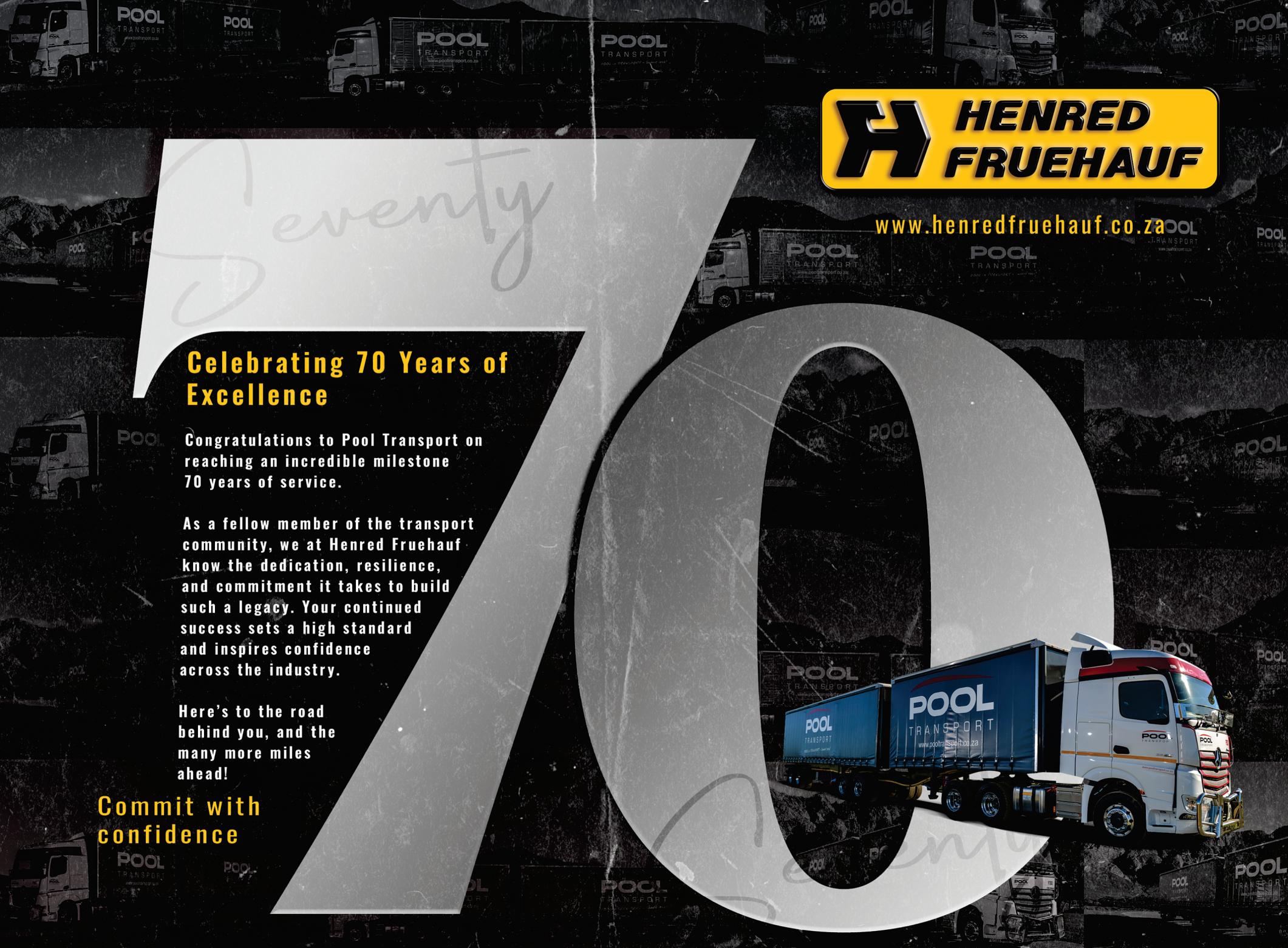 We salute Pool Transport on celebrating 70 successful years in the South African transport industry and wish them all the best on their exciting road ahead