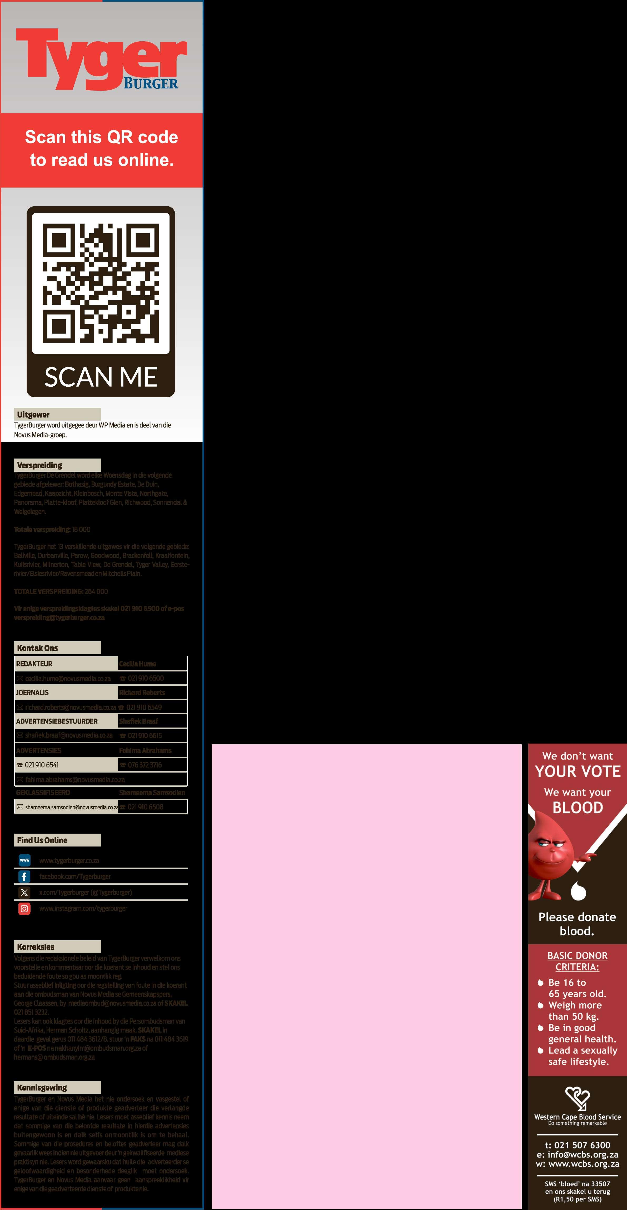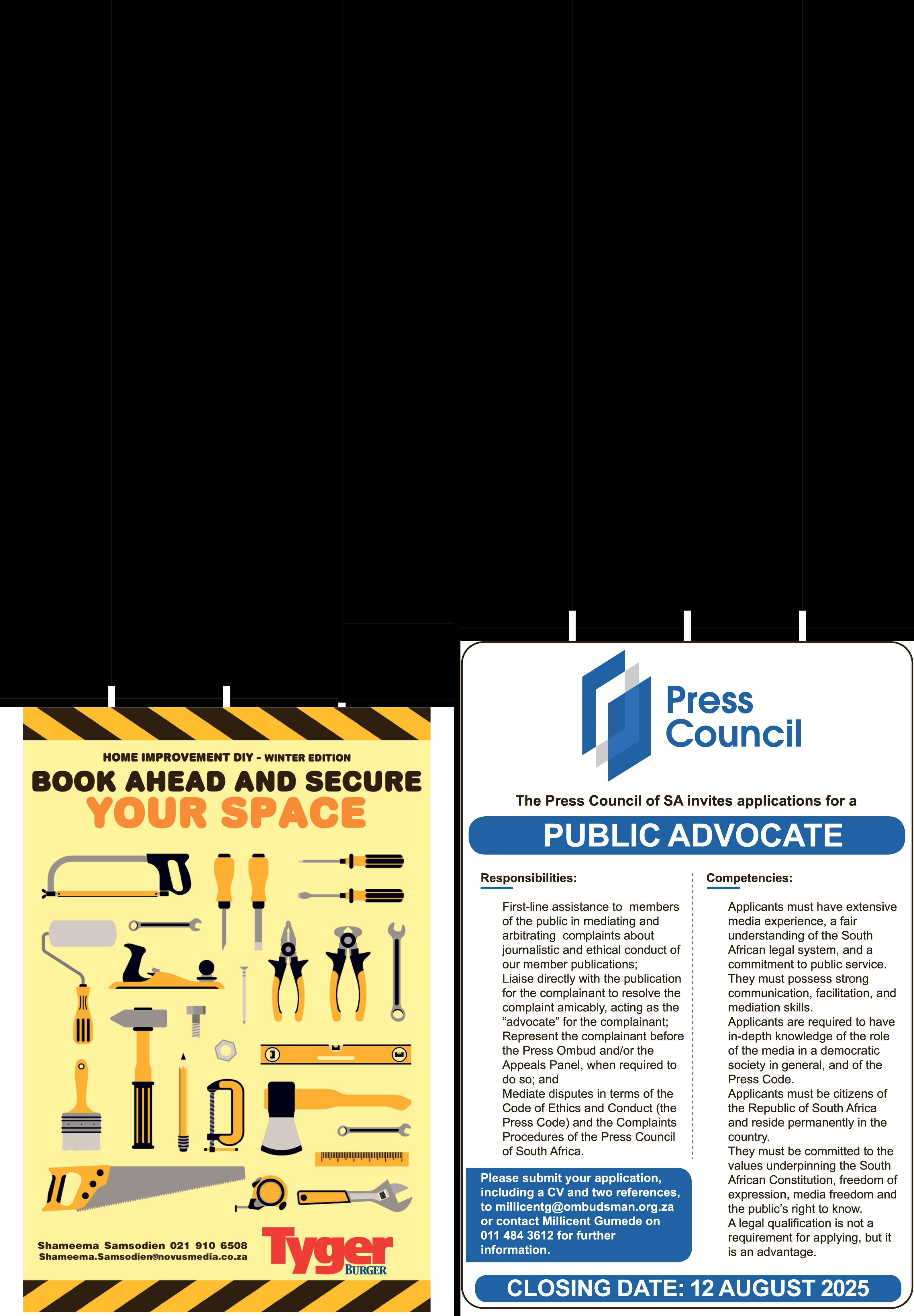 The article "Sapoa fights tariffs" (TygerBurger 23 July) refers I am a property owner and resident in Bothasig I herewith join Sapoa, challenging thee property-linked tariffs recently introduced by the City of Cape Town in its 2025-26 budget