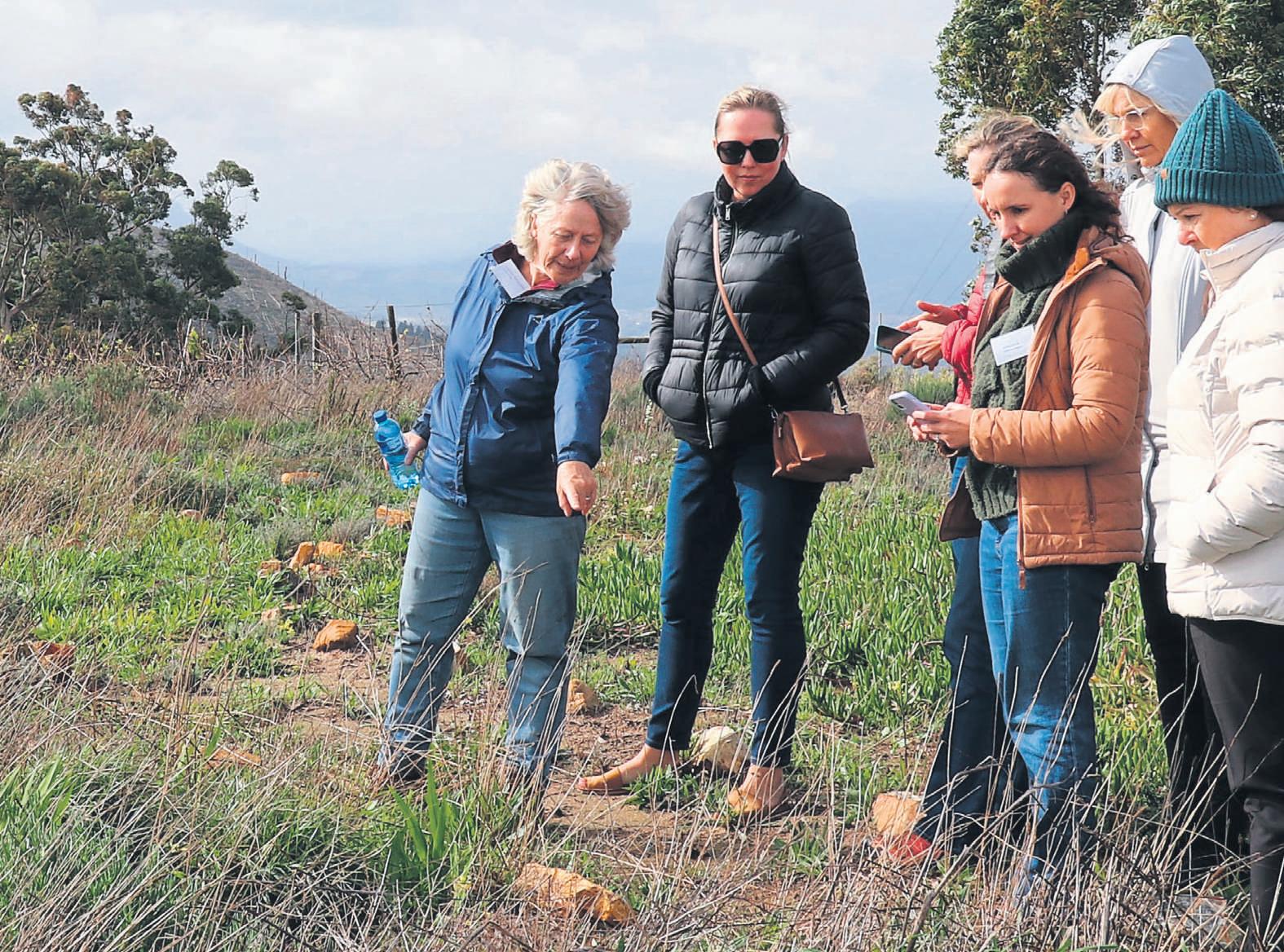 Lynda Muller,botanist from Discover Renosterveld (left) talking about the rewilding site on Mooiplaas, neighbouring farm to Zevenwacht and another member of the Bottelary Hills Renosterveld Conservancy