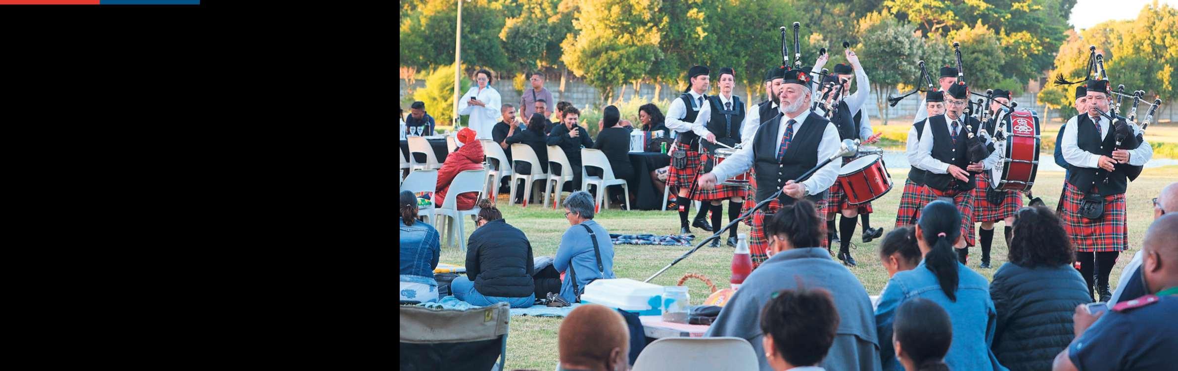 The evening featured performances by the Nelson Mandela Artillery Pipes and Drums, Fortissimo Musicales, Vezz, and Salome Guest speaker actress Khadija Heeger