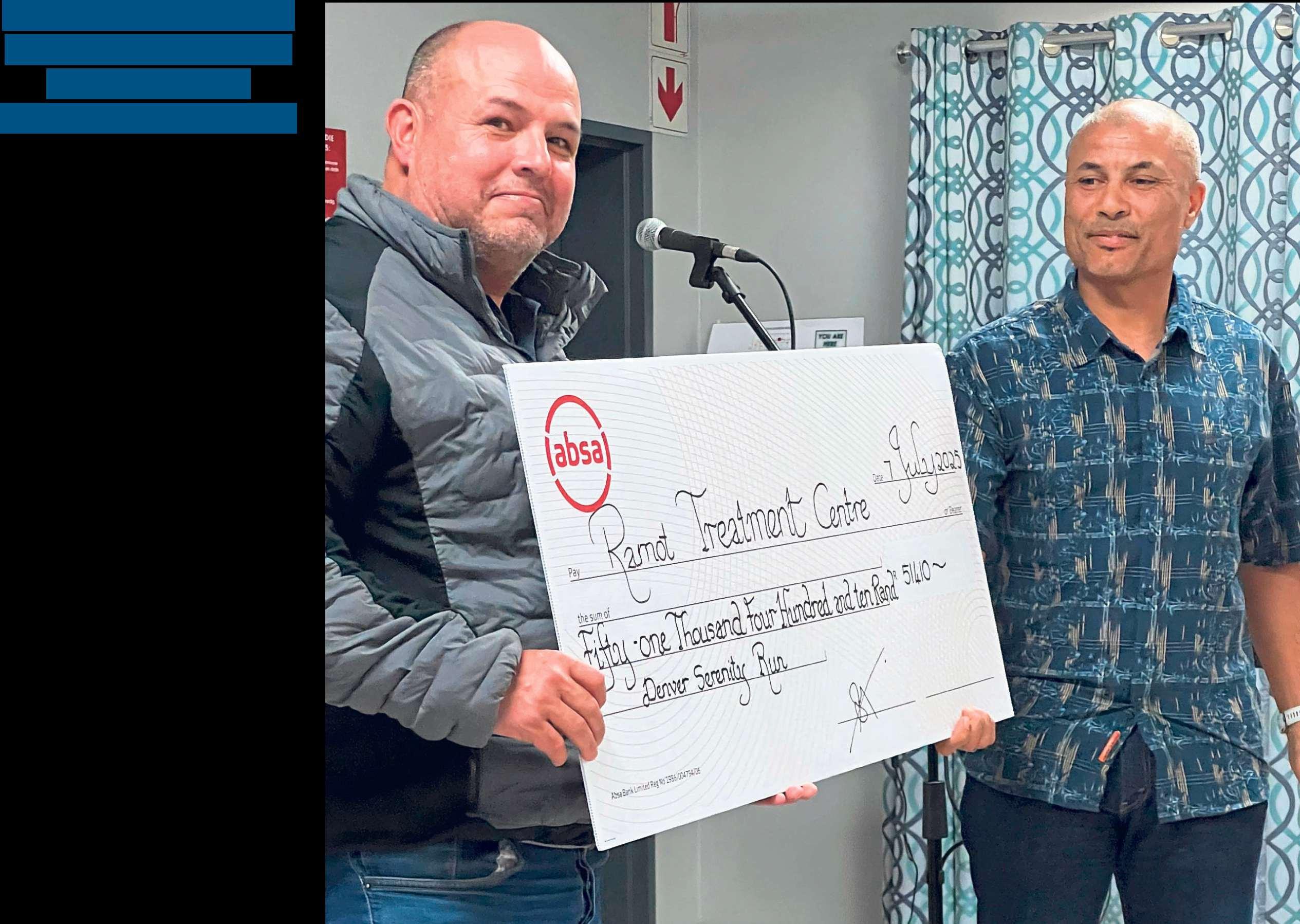 Last week Van der Bergh visited the Ramot Treatment Centre for Substance Abuse in Frans Conradie Drive during their annual general meeting where he handed over a cheque for R51 410 to the centre, in order to help people who cannot afford professional treatment for addiction