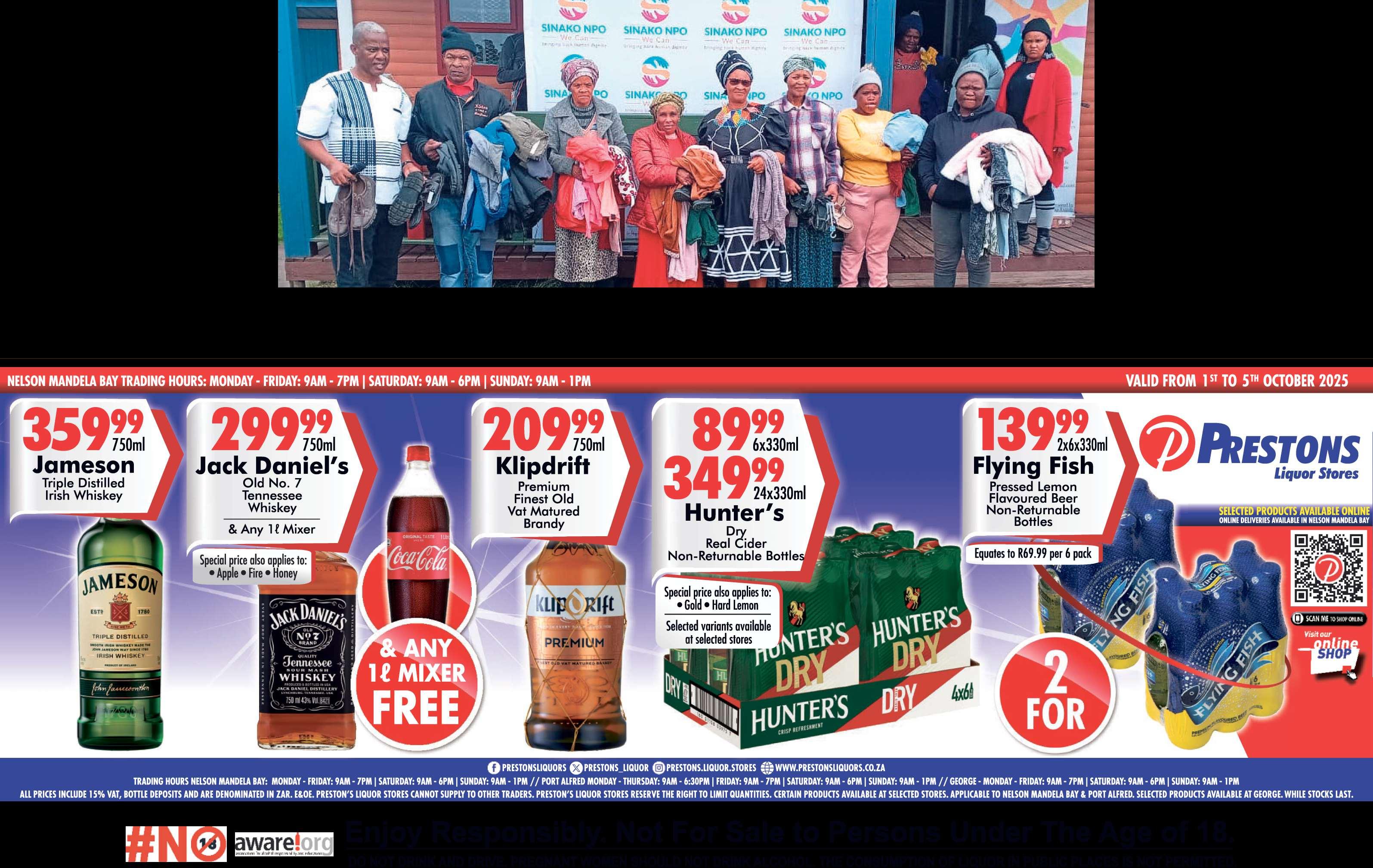 Sinako NPO’s community support extends beyond clothing drives The organisation’s next project involves assisting a family affected by fire disaster “Our next project will be assisting a family with furniture after they were struck by a fire disaster and left with nothing They were able to build a shack with municipal-supplied material but are unable to move into it as they do not have furniture or beds Sinako will assist them so they will be able to occupy that temporary structure,”