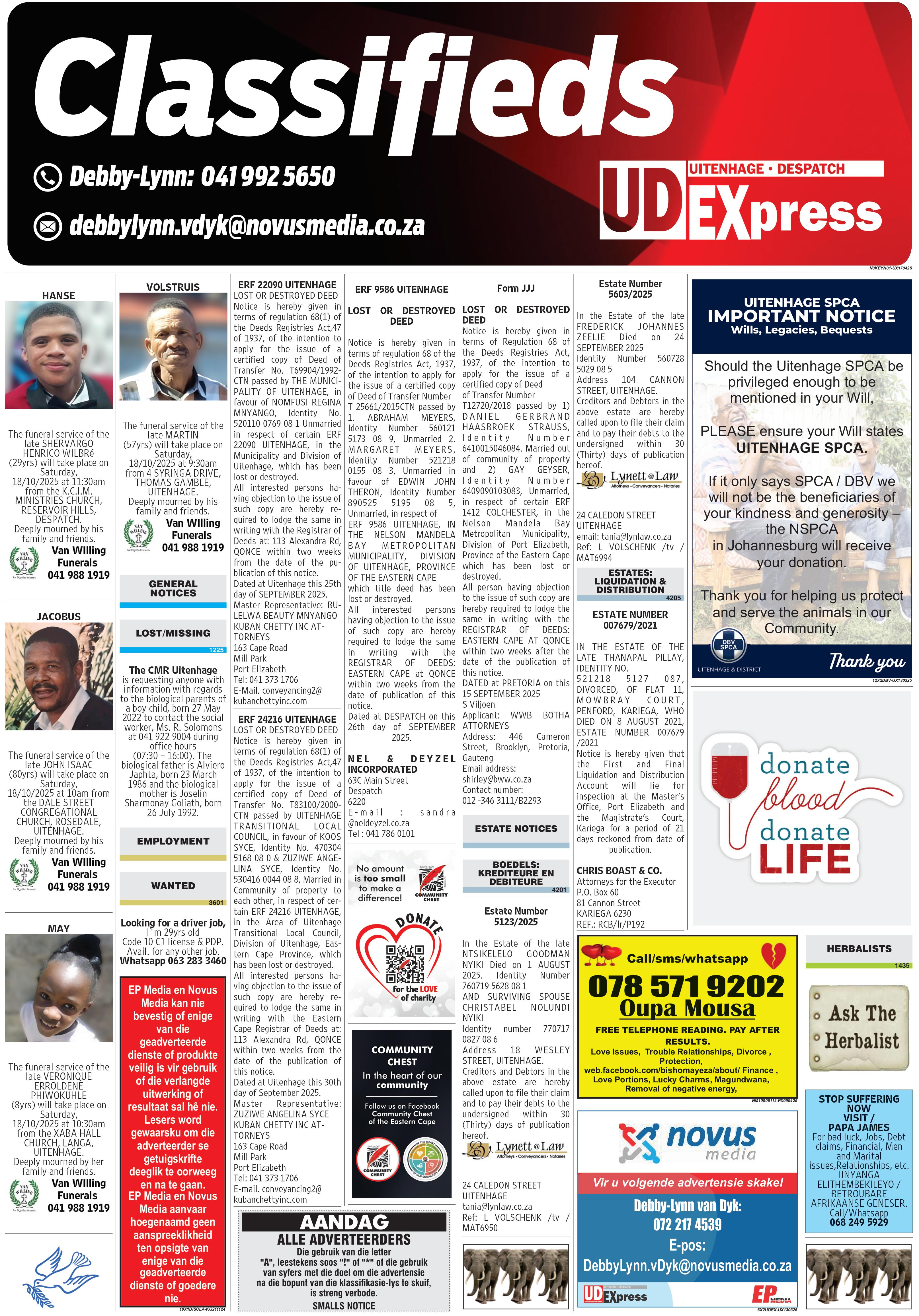 Send your Diary entries to udexpress@ novusmedia.co.za. The deadline for entries is 14:00 on Mondays. Entries may be in English or Afrikaans