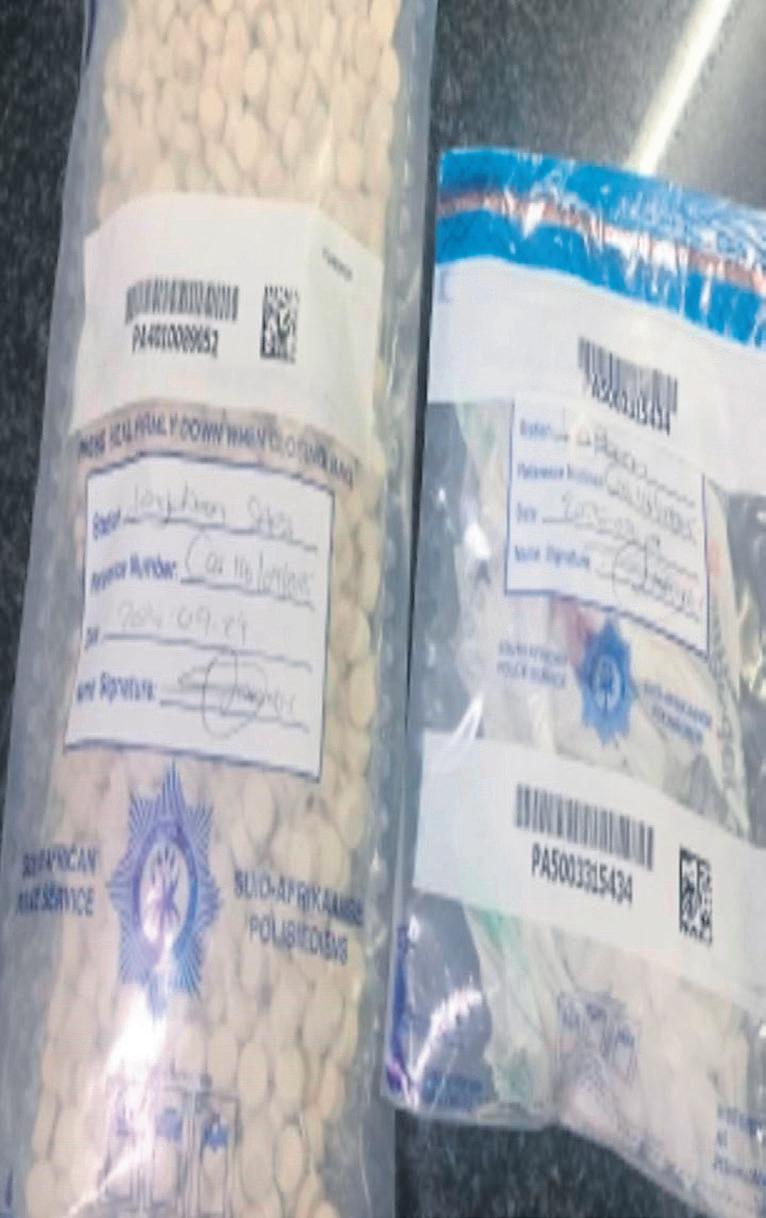Van die Mandrax-tablette wat in ’n verdagte motor op die R27 gekry is. Foto: SAPD