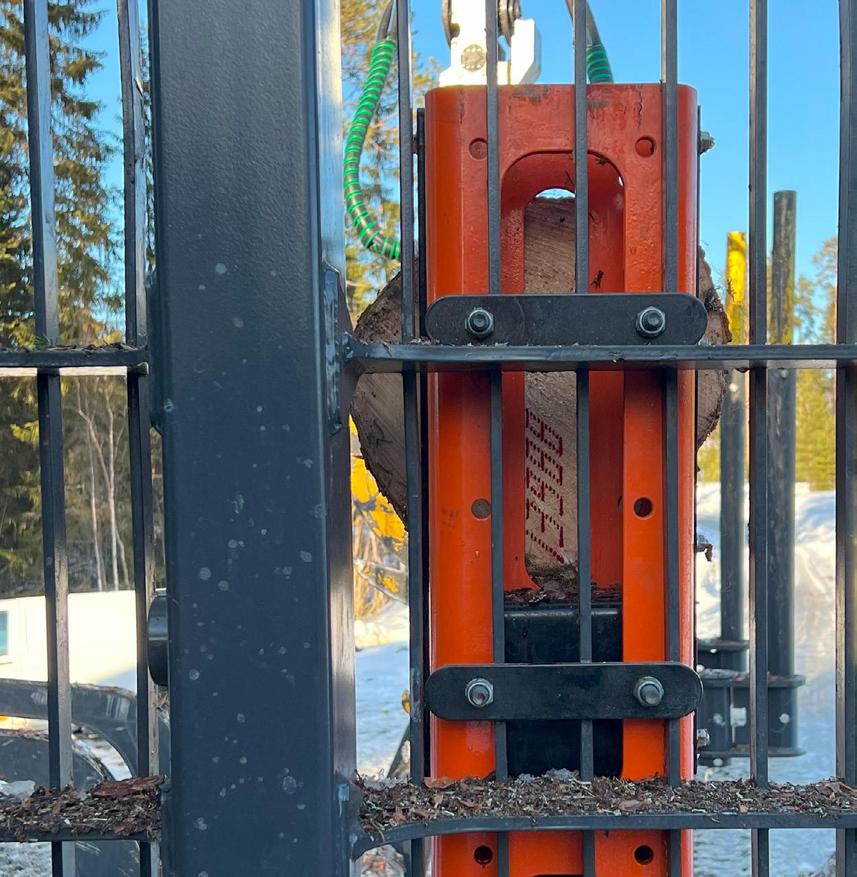 Stockhållaren hjälper till att styra in virkesstocken och hålla virkesstocken på plats vid märkning.