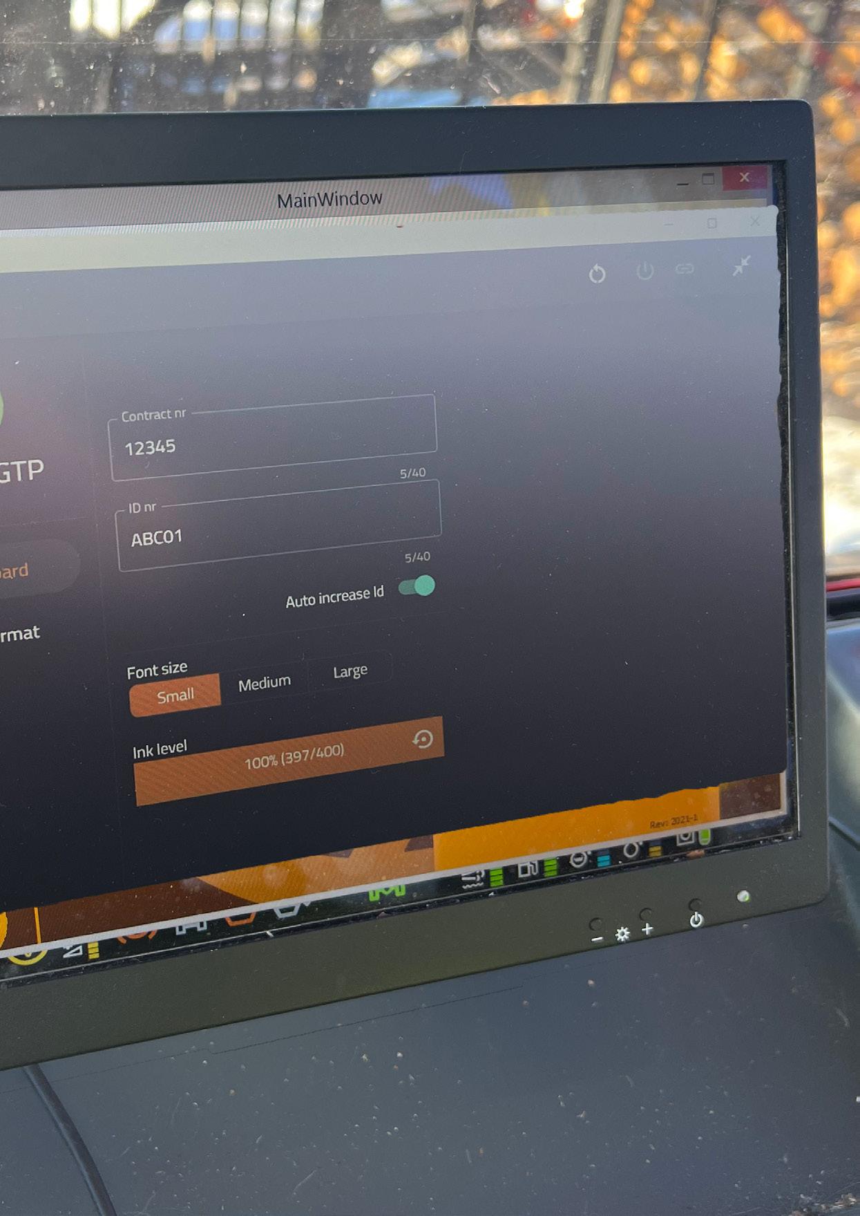 • Börjar färgen dra in i stocken, öka det vi kallar för ”Boldlevel” och justera ner märkningslängden med hjälp av ”Printspeed”. När det sedan drar mot vinter sänk ”Boldlevel” om märkningen tenderar flyta ihop.