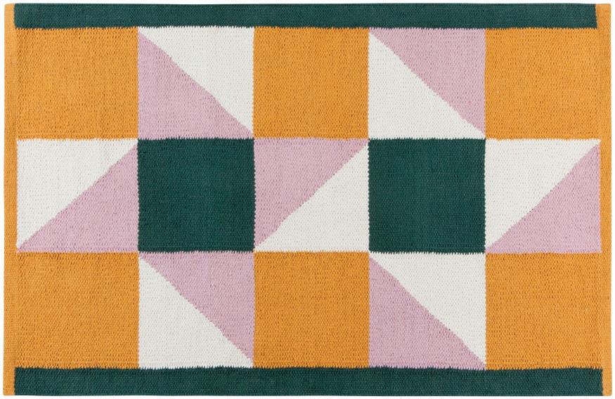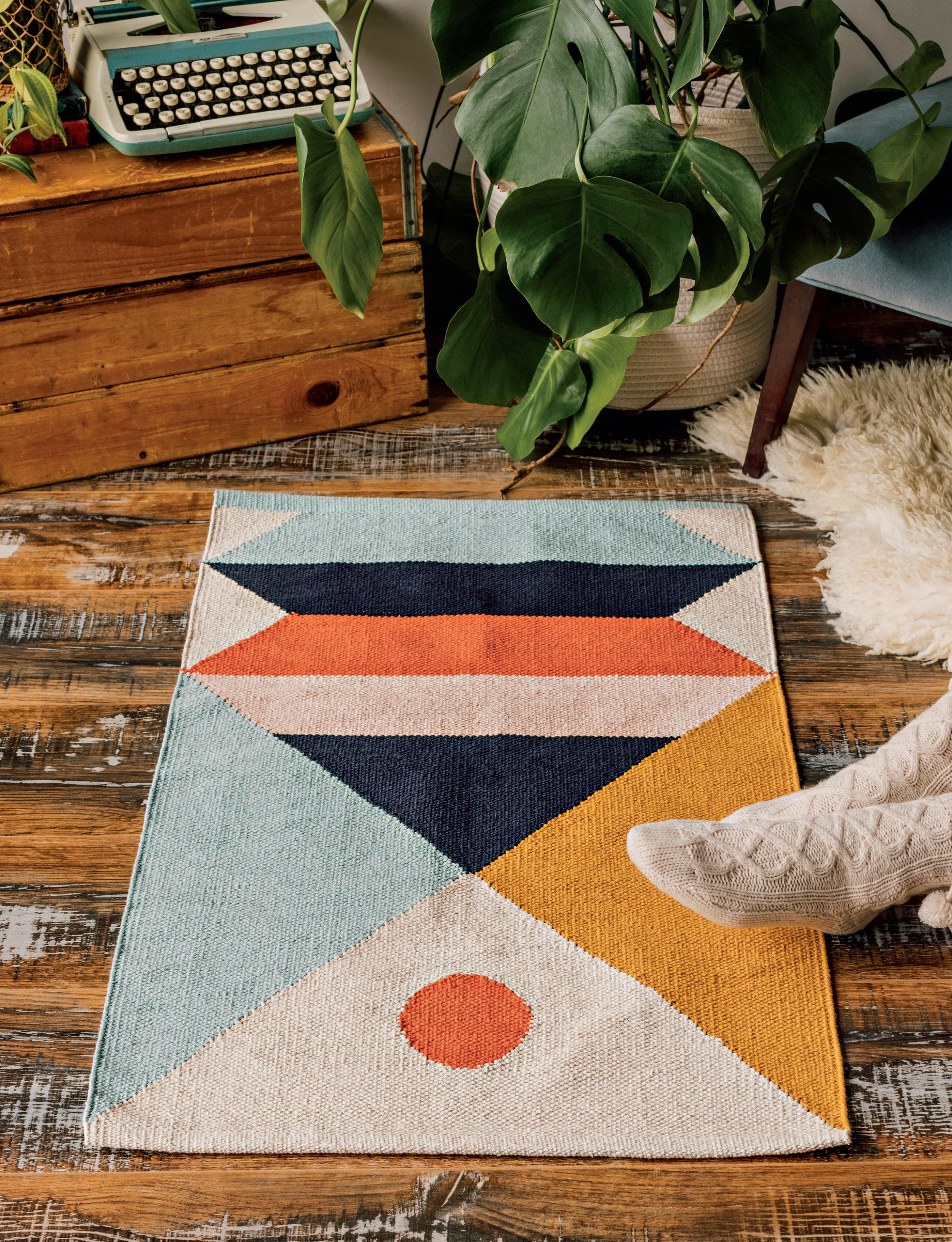Shapes shift and spin while colors pop and pirouette in a rhythm set in motion long ago. The perpetual appeal of quilt-inspired patterns and block print techniques blend seamlessly with a contemporary palette in this engaging arrangement.