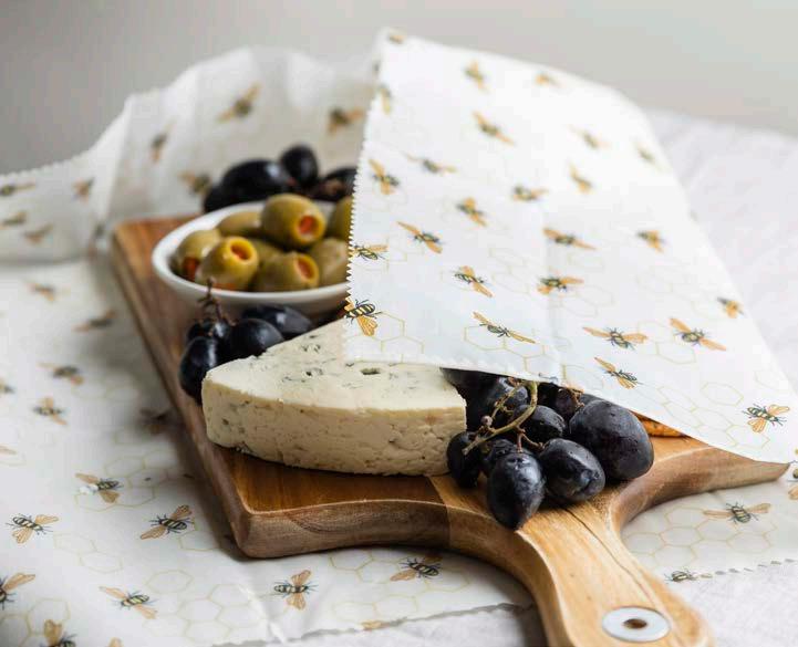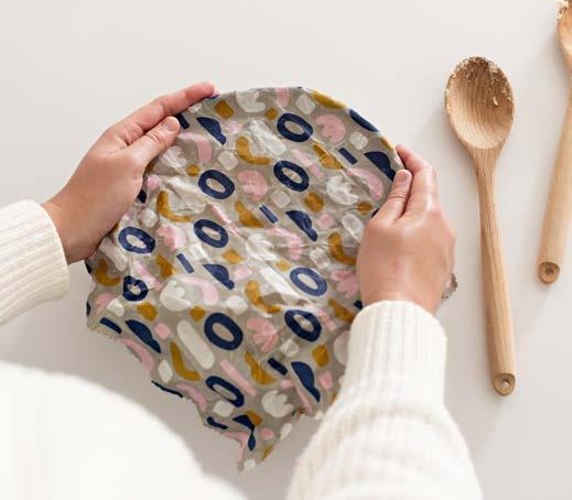 A mix of beeswax, pesticidefree pine resin, and coconut oil is applied by hand to sheets of indian cotton