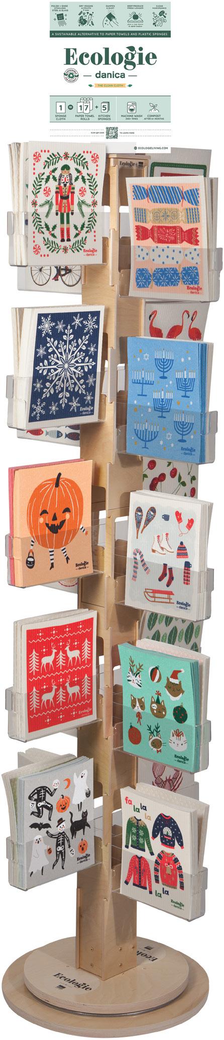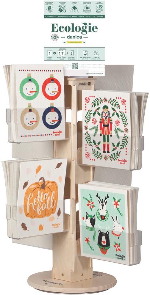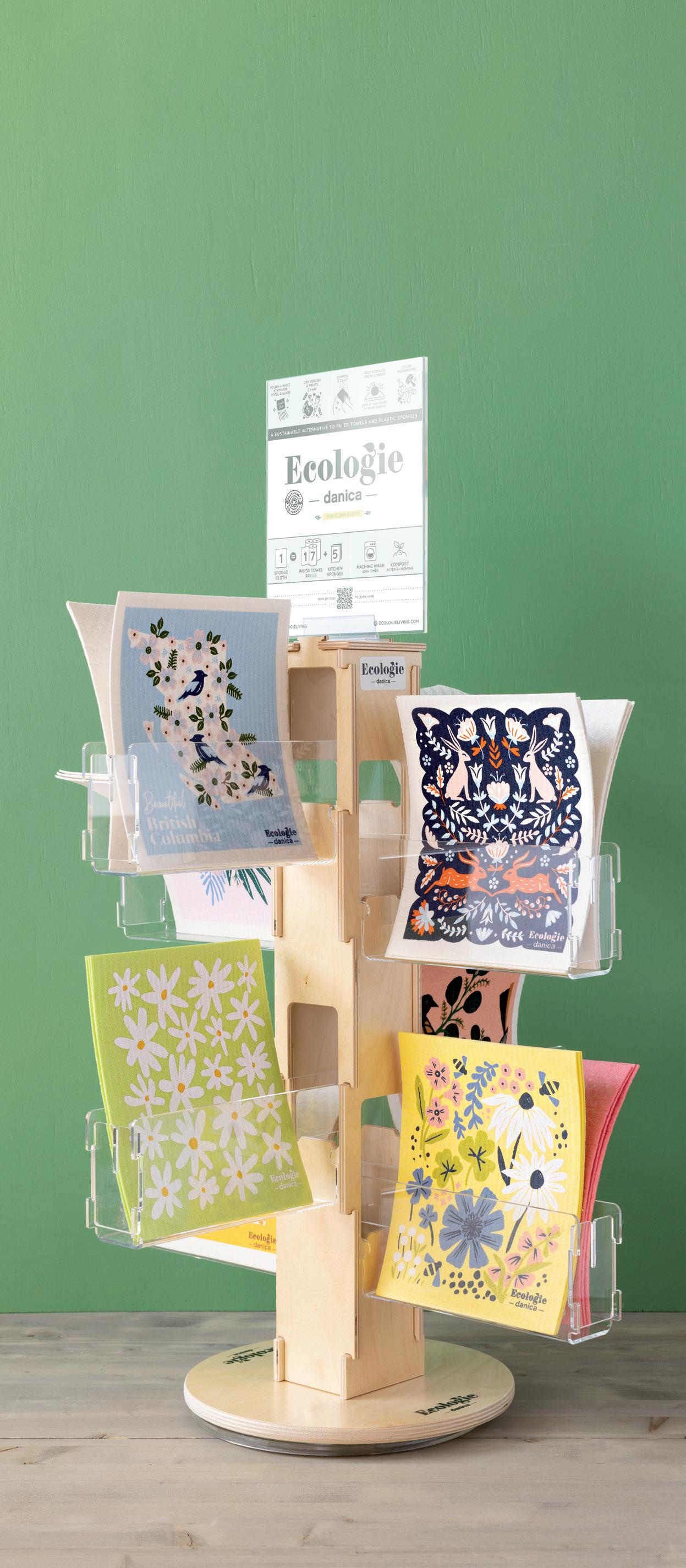 Maximize your Ecologie sales with spinner racks. Each birch base display unit comes with an informative photographic header card to educate your customers about product features.