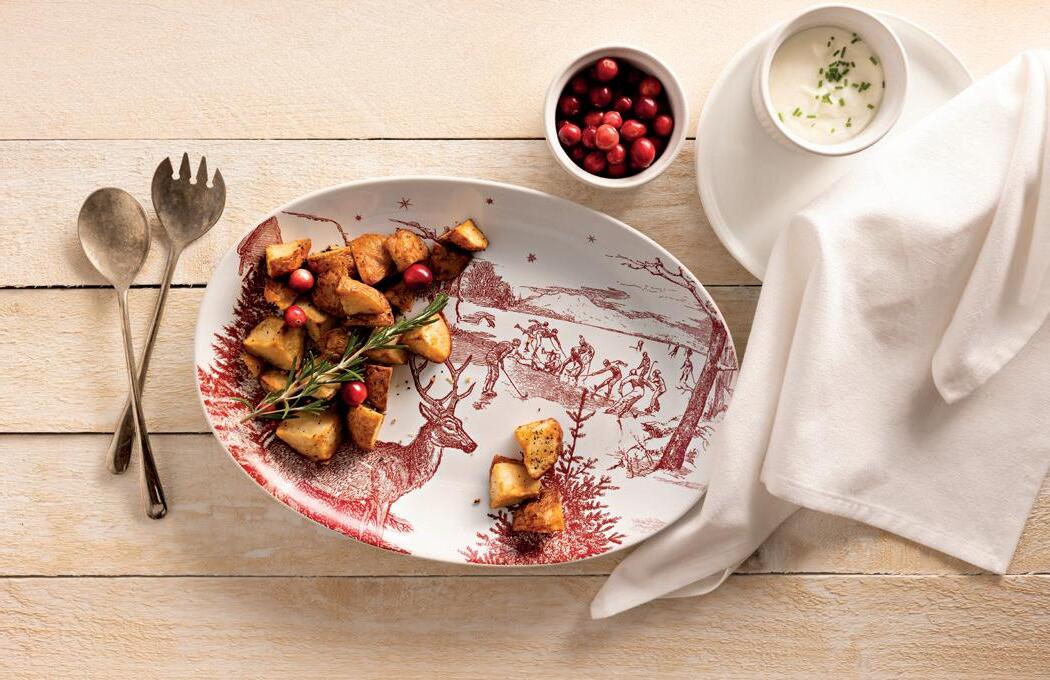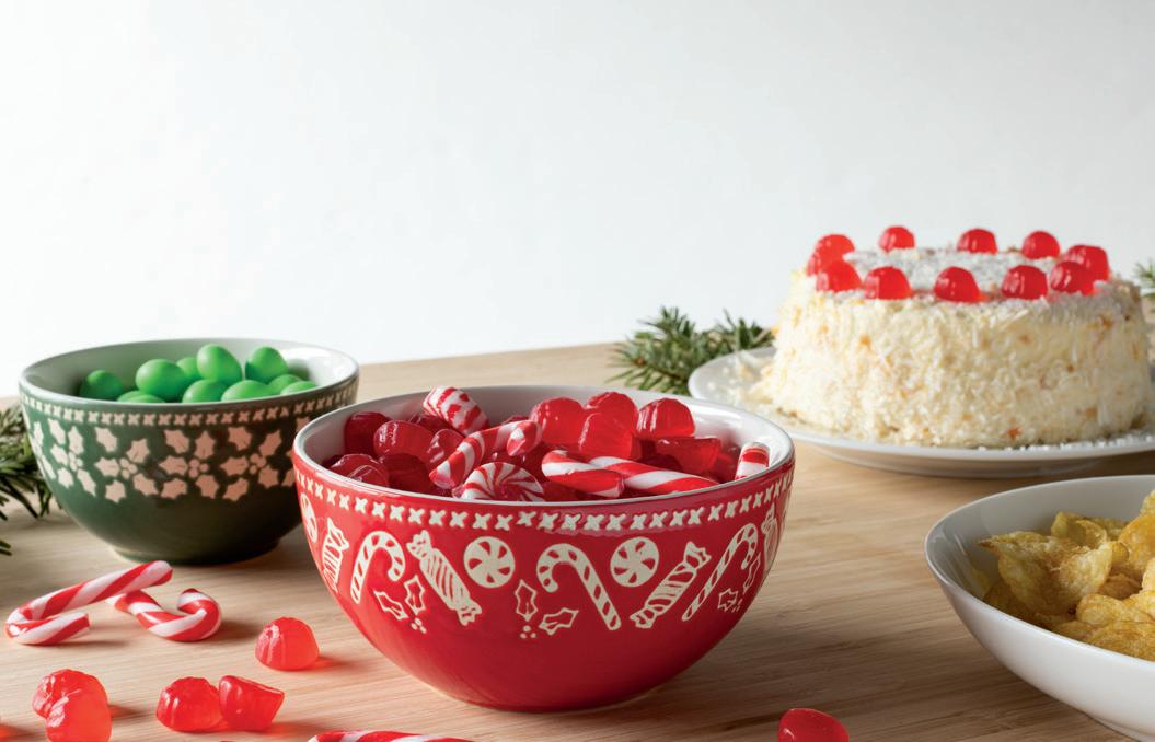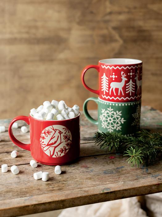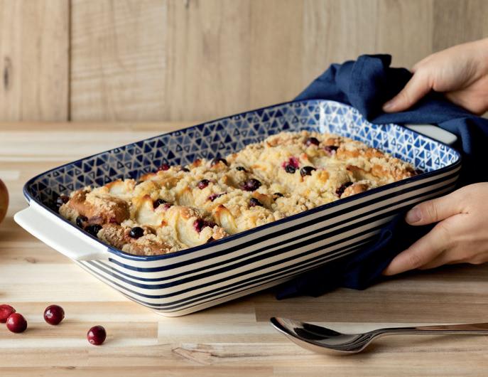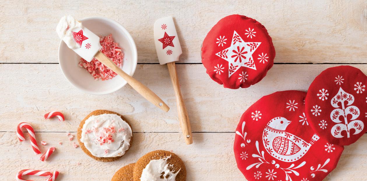 Soup bowls with handles and quilted bowl cozies help seasonal soups, chilis, and stews warm your soul. Baking up batches (and batches!) of Christmas cookies is made easier with porcelain egg crates close at hand. Patterned serving platters put your kitchen creations on gorgeous display.