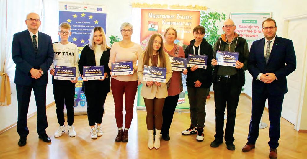 odbyło się wręczenie na gród w Konkursie Wiedzy o Komunikacji Zbiorowej, który odbywał się od 27 sierpnia. Udział w rywali zacji wzięło aż 470 osób. Laureaci otrzymali bez płatne bilety okresowe. Od 27 sierpnia miesz kańcy gmin członkowskich Międzygminnego Związku Komunikacyjnego mogli rywalizować w Konkur sie Wiedzy o Komunikacji Zbiorowej. Kupony kon kursowe dostępne były w Terenowych Punktach In formacji instalowanych najczęściej podczas imprez plenerowych, a także w punktach mobilnych MZK organizowanych w drugiej połowie września – najczę ściej w urzędach miast i gmin zrzeszonych w MZK.