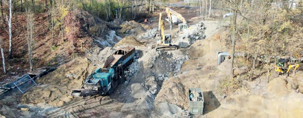 Do tej pory wykonano ni welację terenu wraz z roz biórką nasypu kolejowego. Przeprowadzono także przebudowę sieci ciepłow niczej. Trwają prace doty czące całkowitej rozbiórki wiaduktu kolejowego. Jed nocześnie prowadzone są działania związane z budo wą kanalizacji deszczowej wzdłuż ciągów komunika cyjnych. Po zakończeniu tego etapu prac przyległy teren zostanie oczyszczo ny z elementów będących efektem prac rozbiórko wych.