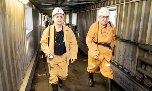 Po prezentacji minister w towarzystwie prezesa spółki i dyrektora kopalni zjechał na poziom 650 me trów do ściany 6 w pokła dzie 401/2, aby osobiście sprawdzić, w jakich wa runkach pracują górnicy.