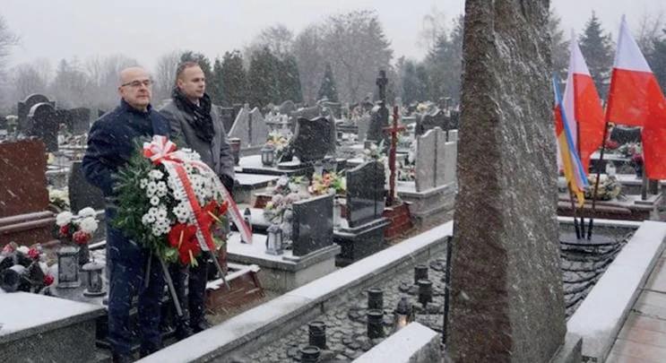 denta Miasta Żory oraz Kamil Owczarek – wiceprzewodniczący Rady Miasta Żory uroczyście złożyli kwiaty na zbiorowej mogile 23 więźniów KL Auschwitz poległych podczas marszu śmierci 17 stycznia 1945 r., znajdującej się na cmentarzu parafialnym przy ul. Nowej.