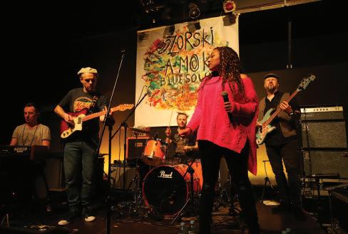 młodszych wolontariuszy z puszek po napojach i ryżu, a reszta to różne marakasy i inne instrumenty perkusyjne przyniesione z zewnątrz przez widzów. Pozostałe osoby zdecydowały się wesprzeć instrumentalistów wyłącznie wokalnie, instruowani przez prowadzącego imprezę Bogdana Rumiaka – łącznie 37 osób – informuje koordynator prac komisji Marek Klimurczyk. Protokół zatwierdził kierownik artystyczny Żorskiego aMOKu Bluesowego – Bogdan Rumiak. Po wspólnym biciu rekordu przyszedł czas na koncerty. W tym roku wystąpili: Kiero Grande ze Słowacji, wokalistka Oxana z Ukrainy wraz z żorską formacją BR Band oraz grupa polsko-brytyjska Wild Flame. Tradycyjnie już po występach artystów, zaplanowano jam session „Pod Arkadami”. (ska)