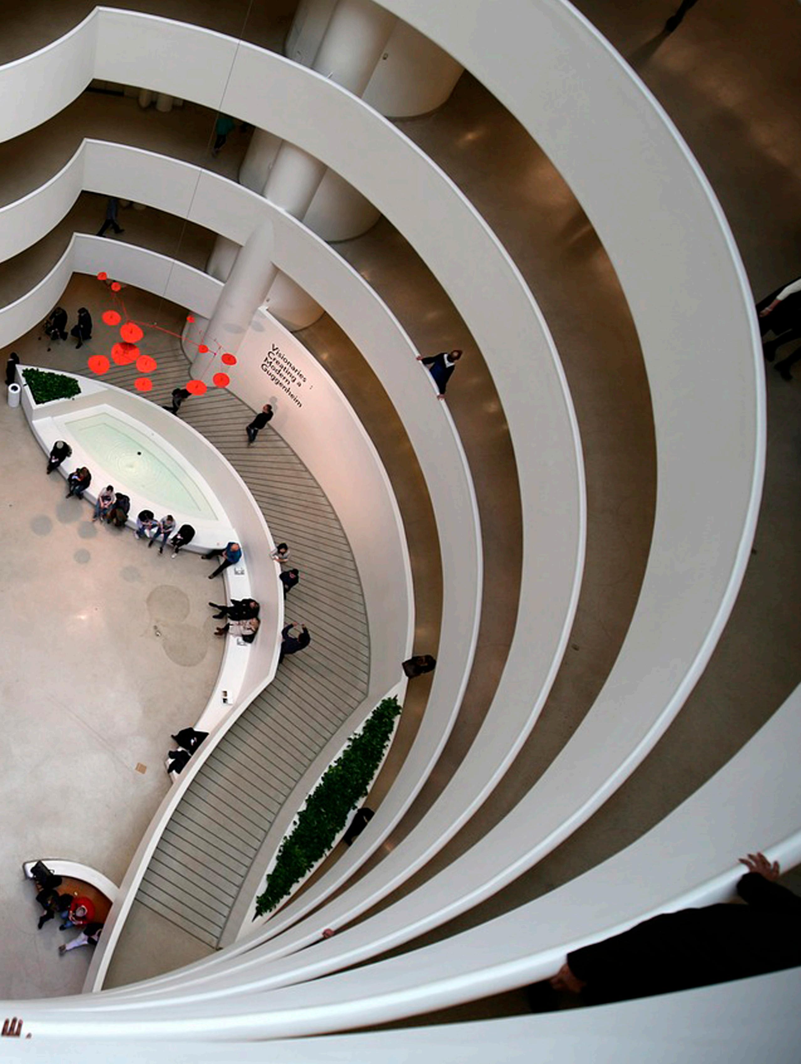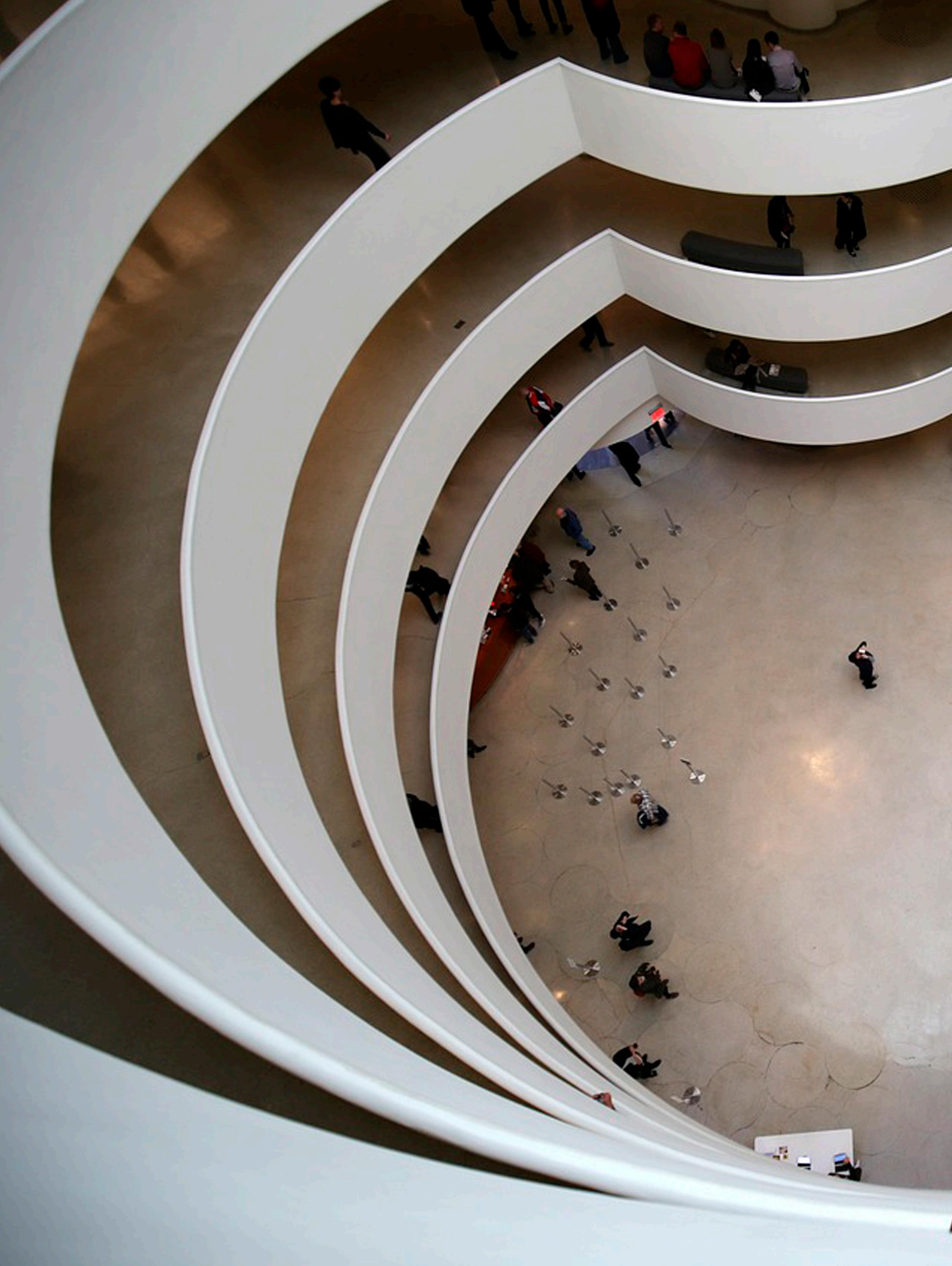 Wright conceived of the museum as an airy, open place where visitors would not have to retrace their steps, instead entering the building on the ground level, taking an elevator to the top, and descending gradually, enjoying the art on display until returning to the entrance.