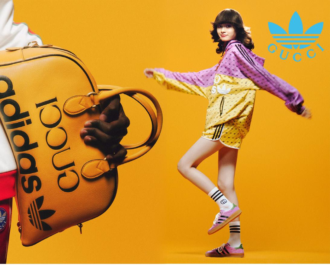 The cross-category selection portrays the kaleidoscopic aesthetic of Alessandro Michele by mixing the codes of the House of Gucci with those of the historic sportswear brand Adidas, and consequentially those of high fashion and streetwear.