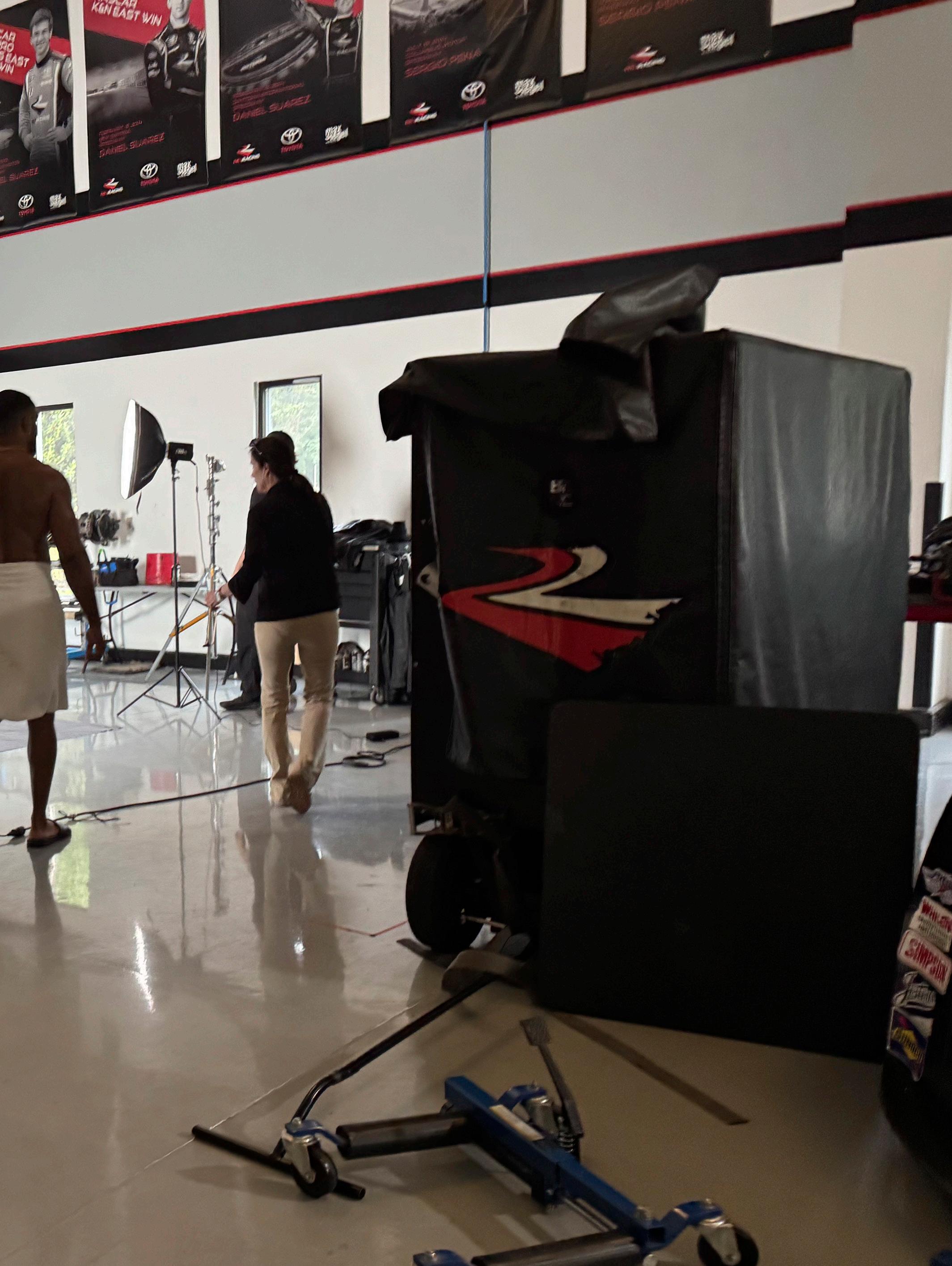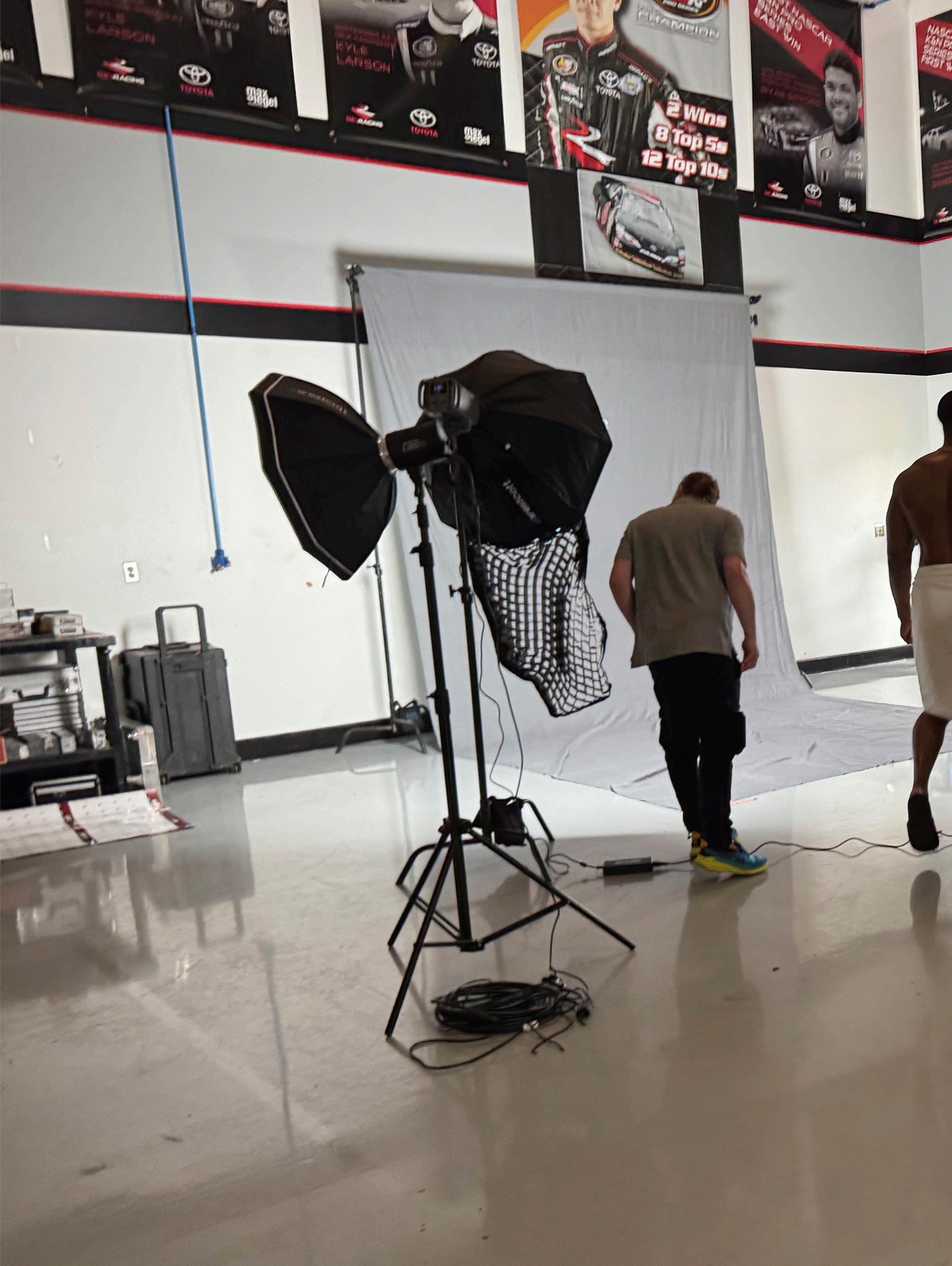 “Before becoming a photographer, I was a pro athlete competing on a world level. As I begun research for this project, I could immediately connect with these guys. They are true professional athletes who train in intense conditions, embody that competitive mindset, and have chosen to make an unwavering commitment to their teams. Everyone knows the race car drivers, but behind the scenes the pit crew is that secret weapon. They work extremely hard performing their skill within a handful of seconds, all with the goal of giving their car that extra edge.