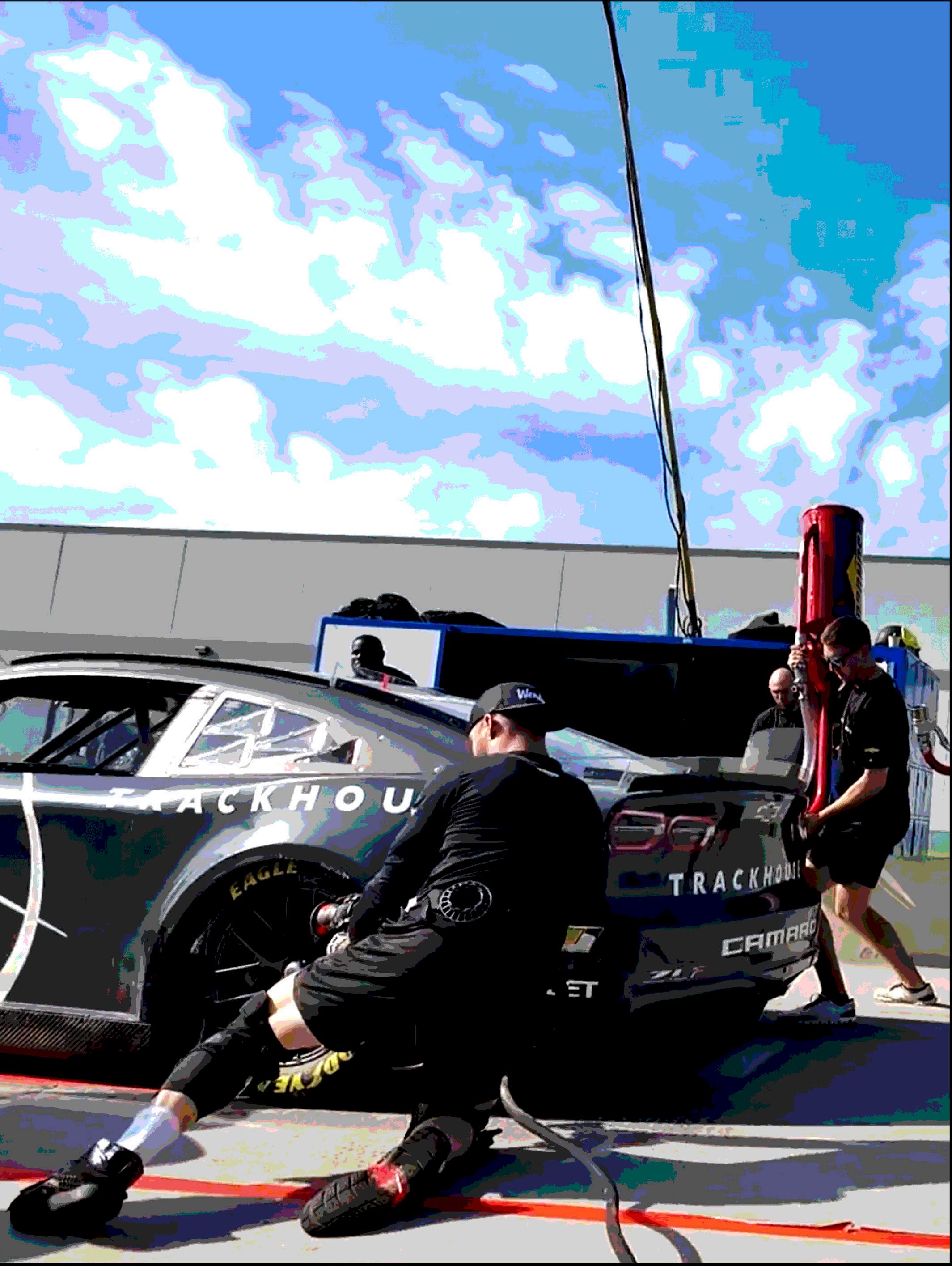 On race day the adrenaline flows, the roar of the engines are intense, and the excitement from the crowd is deafening. Yet when that car comes to pit, the crew of five work seamlessly in that calm within the storm.