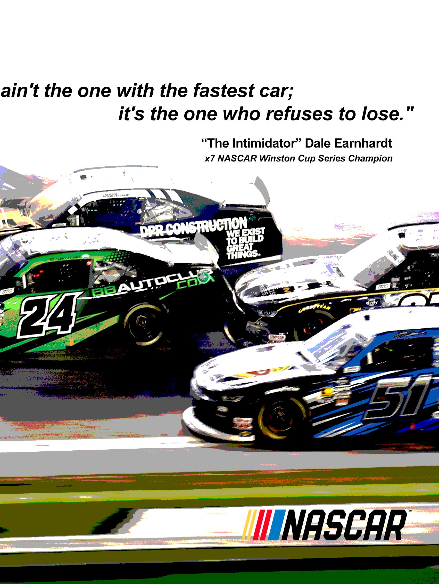 The following photo series showcases each athlete with the hope that you can visualize their apparent physicality and the explosiveness necessary to perform in the best stock car racing series in the world. It provides an inside look into the relentless grind and motivation needed to win.