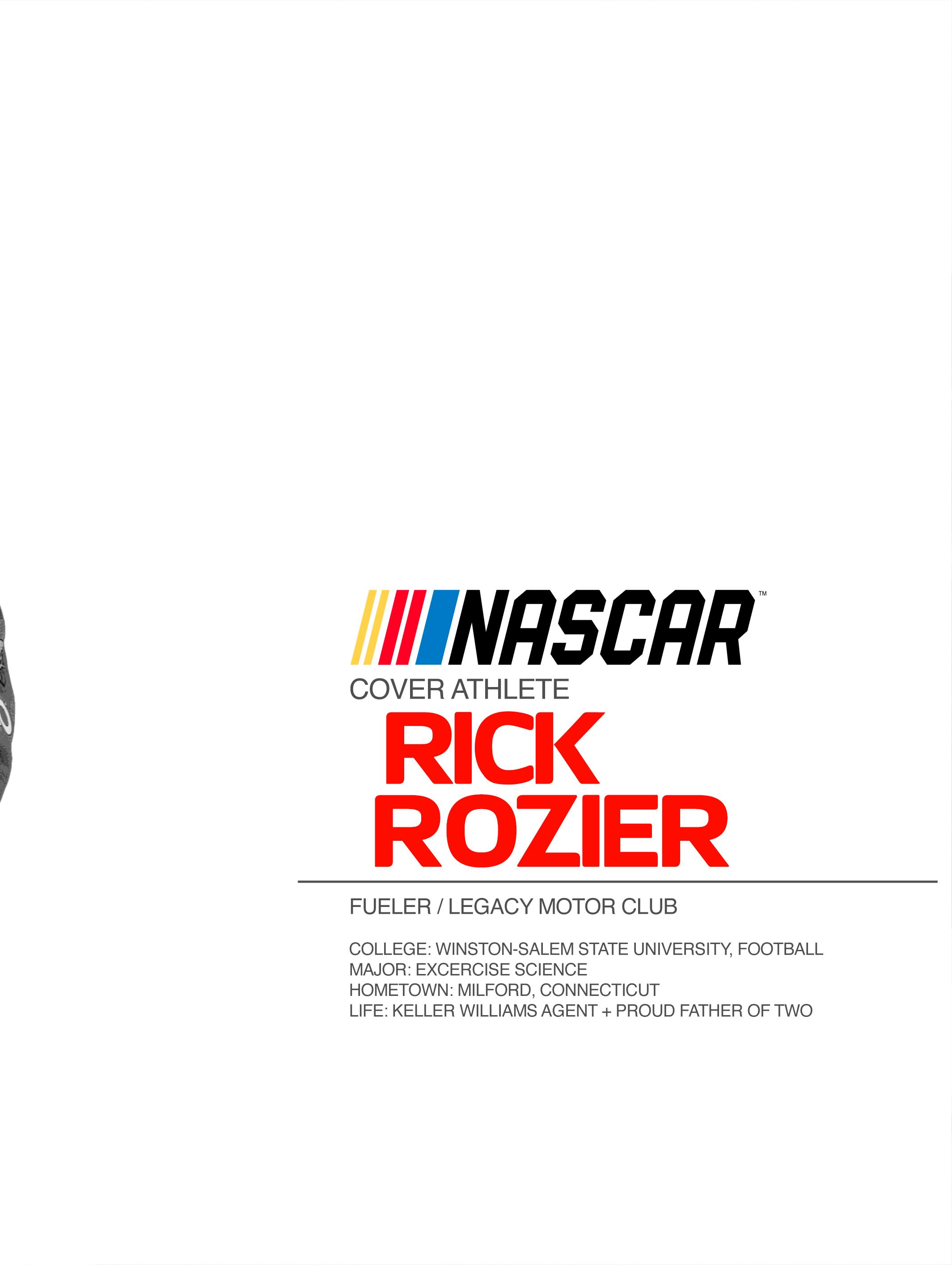 ROZIER: I’m from Connecticut and went to college at Winston State, North Carolina, and played football. After college, I was recruited by NASCAR and went through pit crew training. I didn’t know anything about NASCAR prior to that. I made it through the process and they offered me a job. I started at Stuart Hass Racing and over the years I’ve been with pretty much every major team. Currently I’m with Legacy Motor Club.