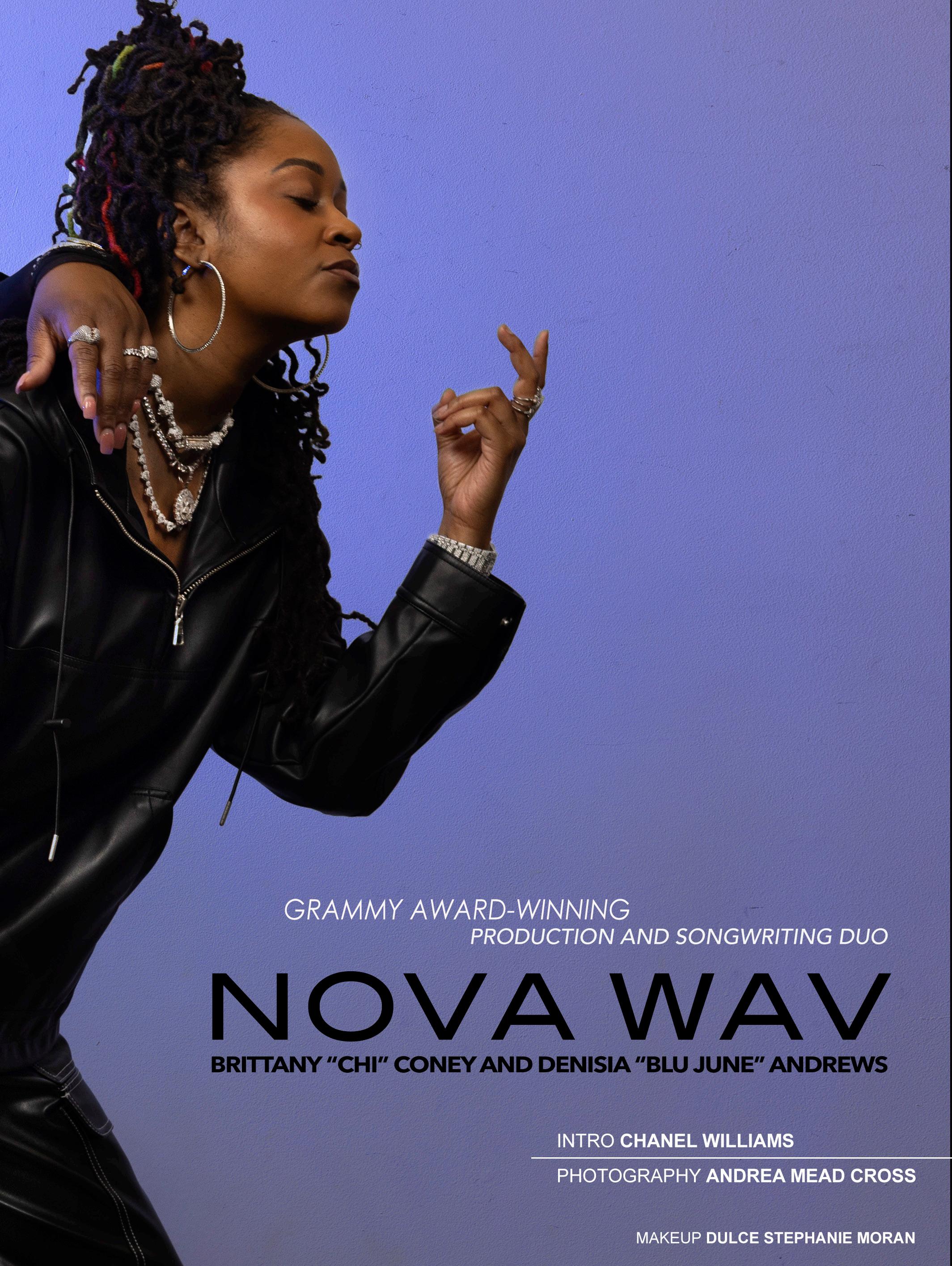 For more than a decade, ever since their 2012 breakout, “Loveeeeeee Song” by Rihanna, NOVA WAV has been working with some of the biggest musicians in the world to create massive hits that span R&B, pop, and hip-hop, from DJ Khaled’s “Just Us” to Nicki Minaj’s “Megatron” and Jazmine Sullivan’s Grammy-winning “Pick Up Your Feelings”. And in a pop scene dominated by men, they have done it as two young American Black women. You can catch them on the most recent Netflix series Hitmaker’s or an Adidas Originals campaign highlighting women in music. The duo isn’t on the rise, they are rolling at the top. Brittany “Chi” Coney grew up in Plant City, Florida and moved to Atlanta, Georgia at 14. She did not grow up in a house with a musical background, but she did play the alto sax in high school and was even in a marching band. Denisia “Blu June” Andrews was born in Ft. Lauderdale, Florida and moved to Tallahassee. She did grow up in a house full of music where her whole family sang, and Blu was always singing.