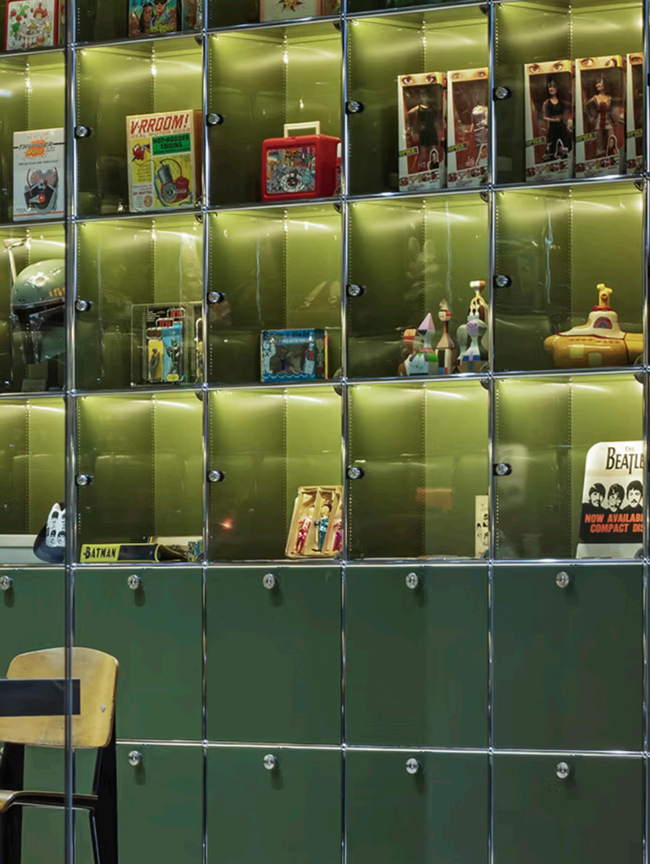 Inside The NIGO Lounge, NIGO’s personal design sensibilities are evident. A massive storage wall, consisting of 284 units of the Swiss USM Haller modular furniture system (a long-time favorite of NIGO’s), is stacked high in a U-shape. This meticulous organization provides both functionality and a striking visual backdrop. The NOT A HOTEL OFFICE also prominently features an authentic Jean Prouvé 6×6 Demountable House from 1944, imported directly from France. This historic structure, filled with vintage French modernist furniture, reflects NOT A HOTEL’s minimalist design philosophy and perfectly captures their ethos of “living anywhere.”
