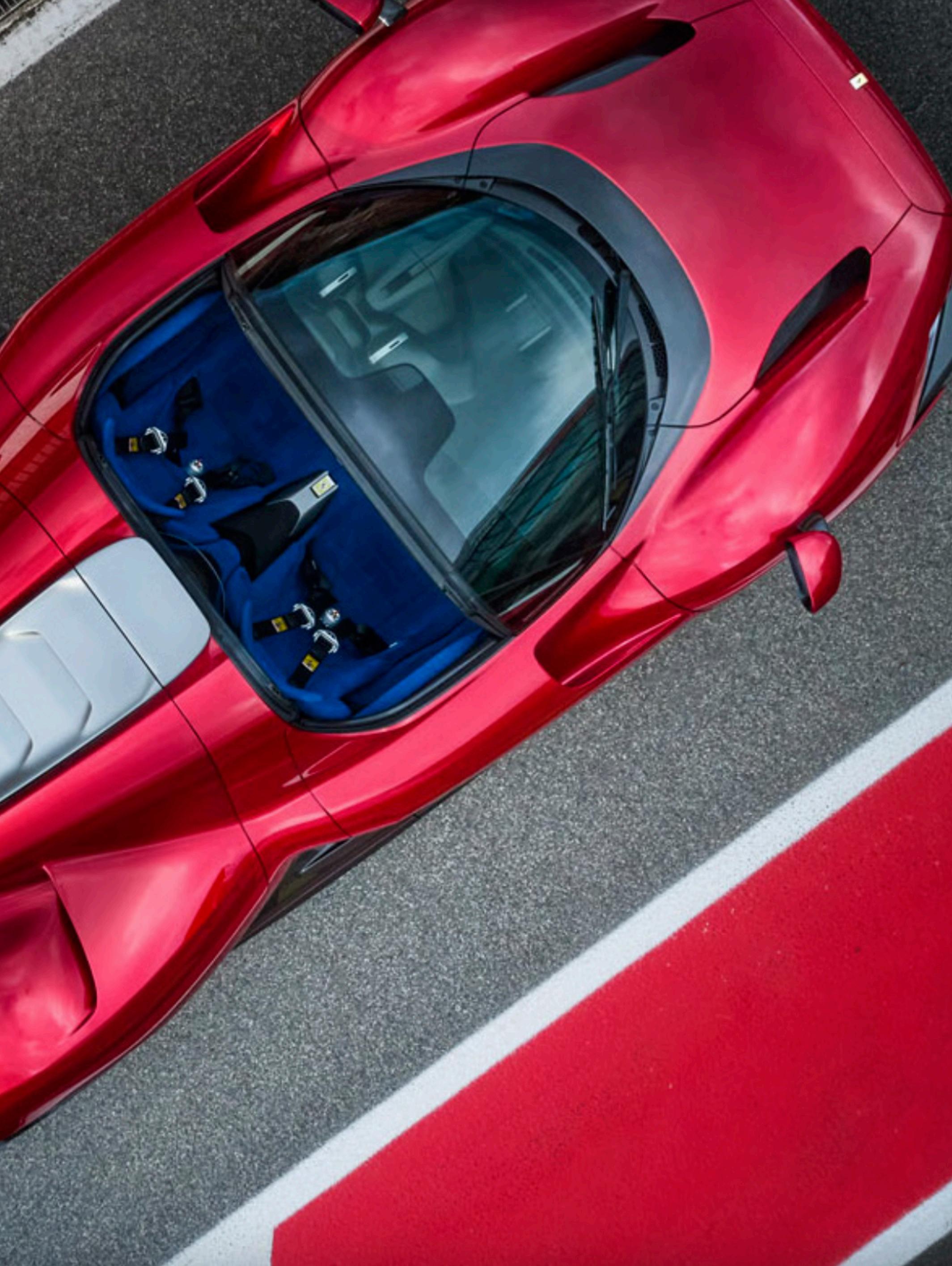 On the dial, the clutch wheel of a V8 engine influences the barrel jewel setting, while models such as the 488 Challenge Evo and SF90 Stradale inspire the case styling and pushers. The skeletonized 30-minute totalizer on the dial mirrors the prominence of a tachometer on a modern Ferrari dashboard, completing the watch’s three-dimensional visual appeal.