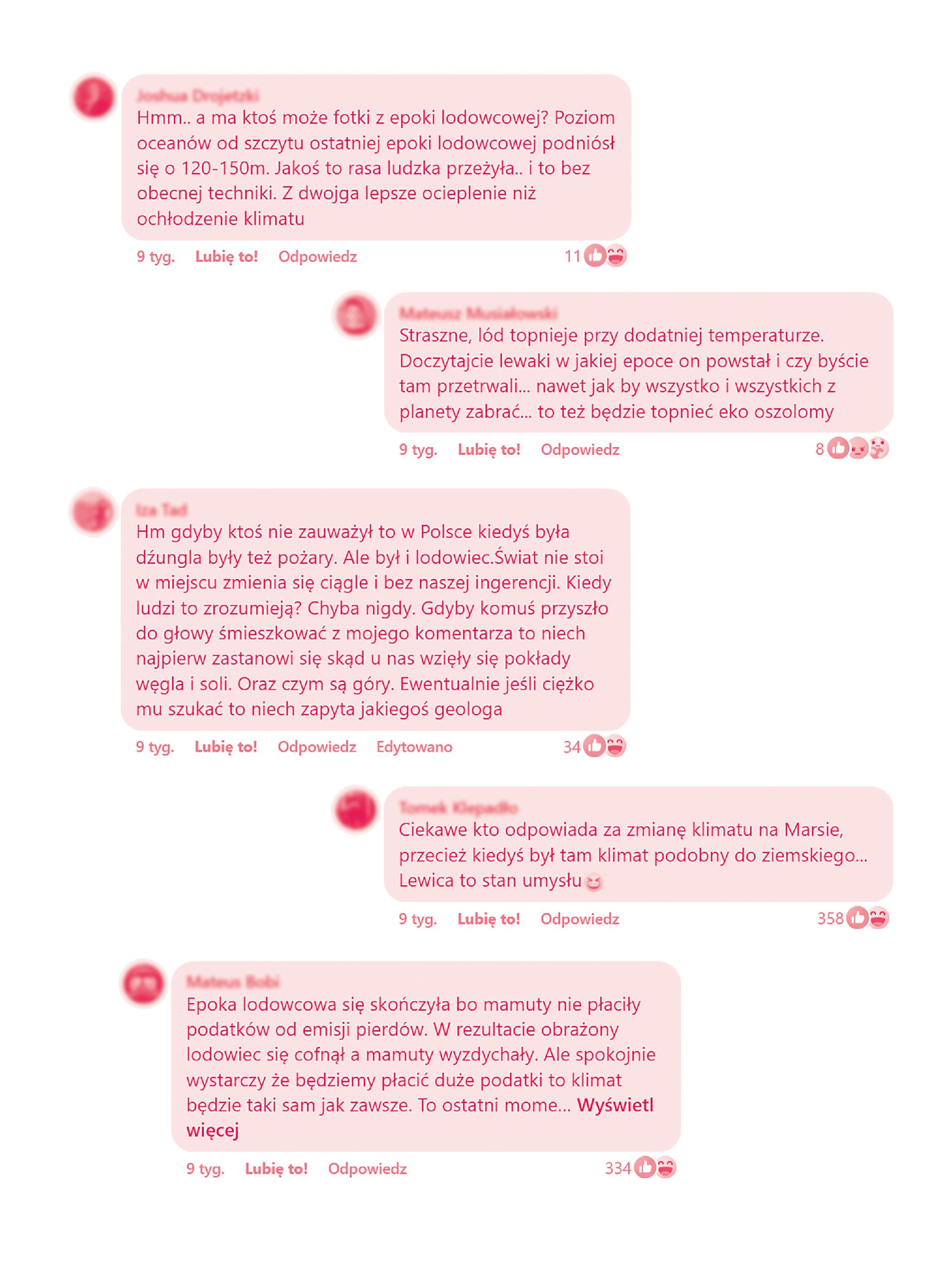 Media społecznościowe, będąc platformą komunikacji i dzielenia się wszystkimi opiniami (co nie niweluje u denialistów klimatycznych poczucia wykluczenia z dyskursu), sprzyjają polaryzacji światopoglądowej. Mimo że antropogeniczna zmiana klimatu znajduje potwierdzenie w przytłaczającej większości badań naukowych 1, głosy krytyczne są liczne: negowany jest antropogeniczny charakter zmian, sensowność reakcji na zmiany na narodowym czy ponadnarodowym szczeblu. Alternatywnie zmiany klimatu uznawane są też za coś pozytywnego.
