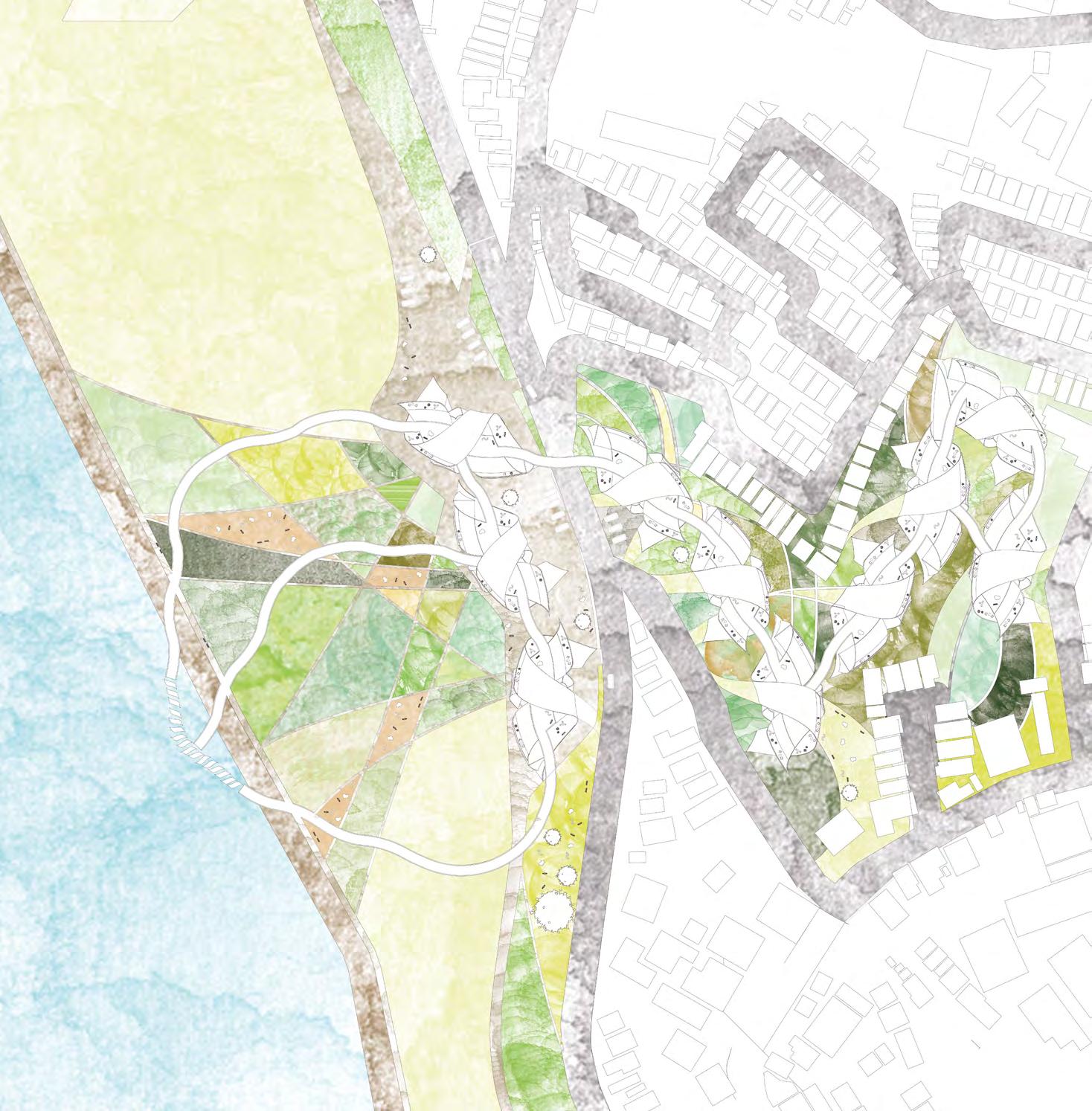 When we think about new ways of living, living along the river is bold but with potential ideas. The awareness of sustainability is becoming popular, but what if you could eat the vegetables which you grow on your own plot of land just nearby? The riverside is a good place for farming as it provides easy drainage. On the other hand, in this modern society, interaction with neighbours is decreasing, especially in collective housing. This project tries to solve this problem by introducing urban farming.