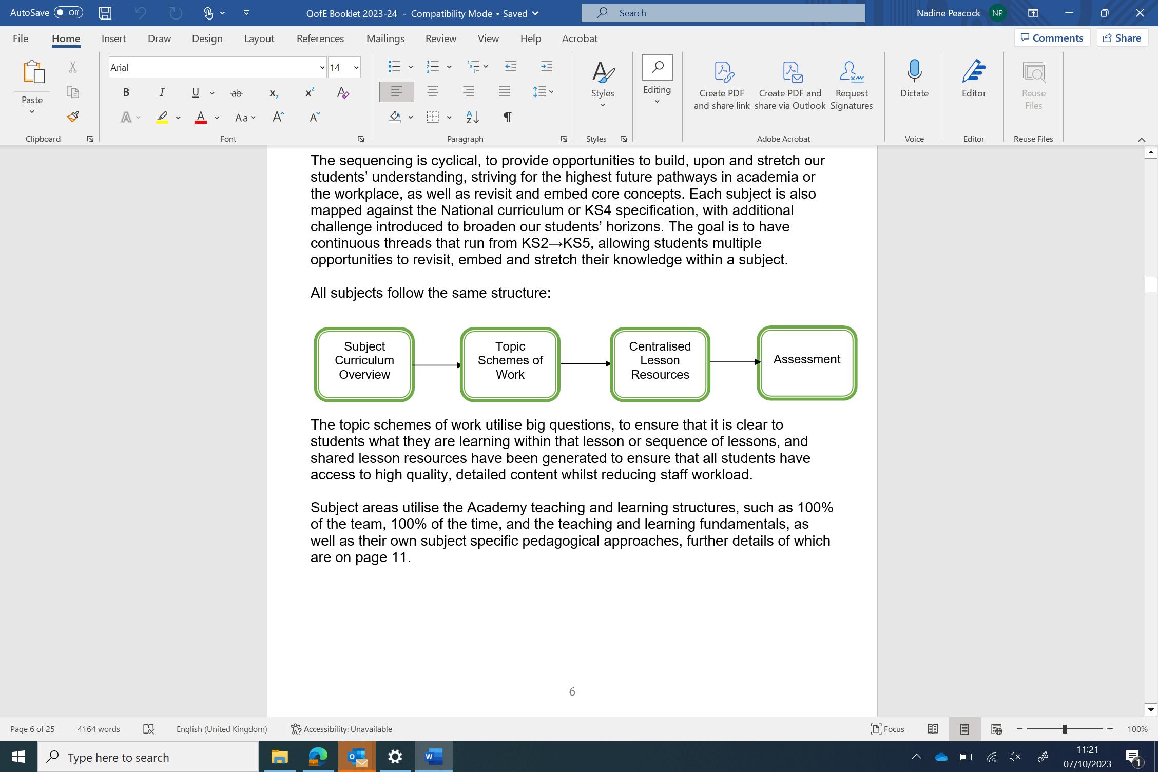 Subject areas utilise the Academy teaching and learning structures, such as 100% of the team, 100% of the time, and the teaching and learning fundamentals, as well as their own subject specific pedagogical approaches. Further details of which are on page 11.