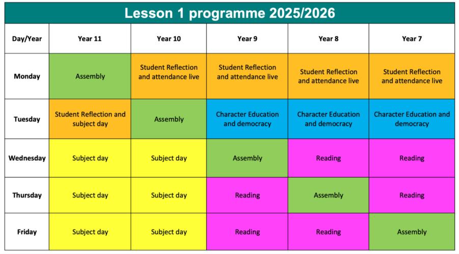 Lesson 1 is high profile and enables an effective start to the day. The lesson 1 programme includes elements of subject support, reading, key messages and personal development