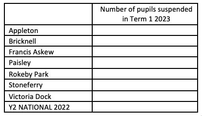 Reduce the number of pupils suspended from the academy Autumn Term 1 - 2023