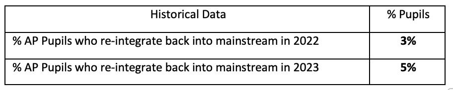 Reduce the number of pupils who are dual registered in AP at Rise Academy from 28 in 2022/2023 to 18 in 2023/2024