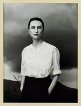 Me as Julia Margaret Cameron and Two Muses comes from an extended set known as ‘Spiritual Family’, begun around 2008. She casts herself in the role of various artists, male and female, who have inspired her, transforming her appearance using costume, pose, props and intricate prosthetic masks specially made for each portrait. The group includes Georgia O’Keeffe, Albrecht Dürer, Claude Cahun, Andy Warhol, Diane Arbus, Robert Mapplethorpe and August Sander. Of the series she has said, ‘Without those artists I probably wouldn’t have become one myself – they were the culture in my life. I wanted to honour them in return by becoming them.’