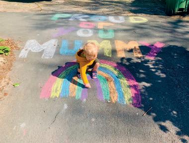 Another recurring theme recorded by entrants was the rainbow. Numerous images featuring this symbol of hope reflected the burst of creativity that took place across the UK, with houses and streets decorated with bunting, banners, paintings and chalk drawings. This rainbow was drawn on the pavement as a surprise for the child’s mother, for her to see when she returned home from working as a nurse on the front line.