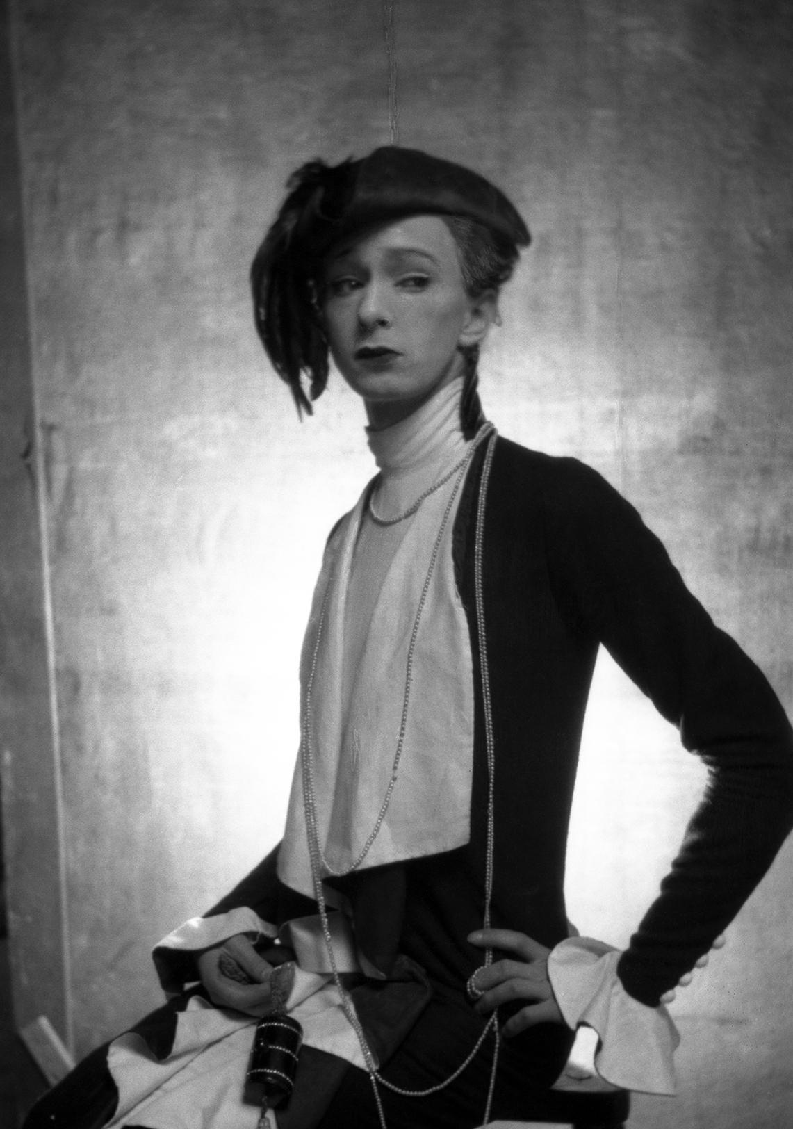 cecil beaton (1904–80) and the National Portrait Gallery have a long and distinguished history. The archive holds nearly 1,500 artworks by or of him, the largest holding outside the Cecil Beaton Studio Archive at Sotheby’s. The earliest Beaton print contained at the Gallery is nearly a century old; an undated self-portrait, a pastiche of an Edwardian picture postcard which he used as a Christmas card and which he must have made some time in the early 1920s. He beams confidently, though a little selfconsciously, as any sixteen-year-old might in a borrowed picture hat. It’s a prescient picture. Though Beaton declared around that time, ‘I want only to be Cecil Beaton’, his experiments with costume and identity would allow him, time and again, to choose just who that Cecil Beaton might be.