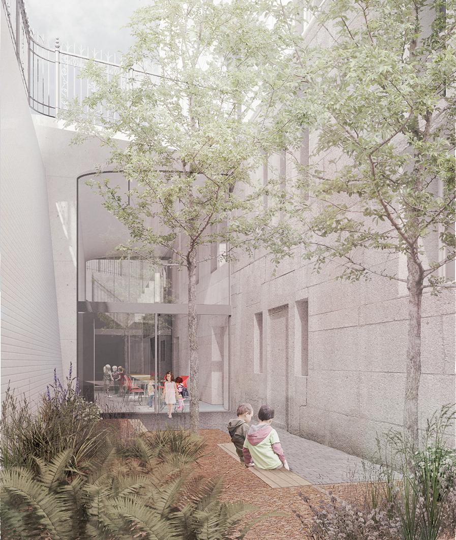 A visualisation of the learning courtyard, below the handsome north façade by Jamie