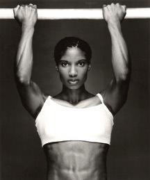 This striking portrait of Denise Lewis was taken in 2000, the year of the British heptathlete’s crowning achievement winning Gold at the Olympic Games in Sydney, adding to her Commonwealth Games and European titles. The geometric style of the image, with its strong vertical and horizontal lines, its sharply contrasting tones, creates a powerful sense of balance in which the subject is simultaneously at rest and in a state of dynamic readiness.