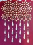 she explained, ‘I purchase white or natural fabric and all dyeing, printing, painting and finishing is done in my studio. Many of the scarves I produce employ discharge printing techniques whereby the colour applied removes the dyed colour with an “illuminating” colour, making for particularly vibrant shades and contrasts. My designs are very much about pattern and colour rather than texture, and I believe they display a strong personal style.’