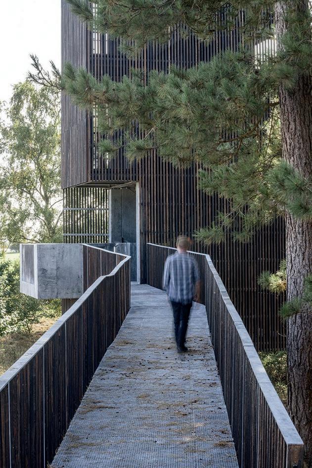 of the landscape by moving through it. The landmark contribution to the transformed experience, however, was a new viewing tower located by the Anglo-Saxon burial ground. Nestled within the pine trees that line the burials, it gives you a unique view that makes the burial mounds stand out.