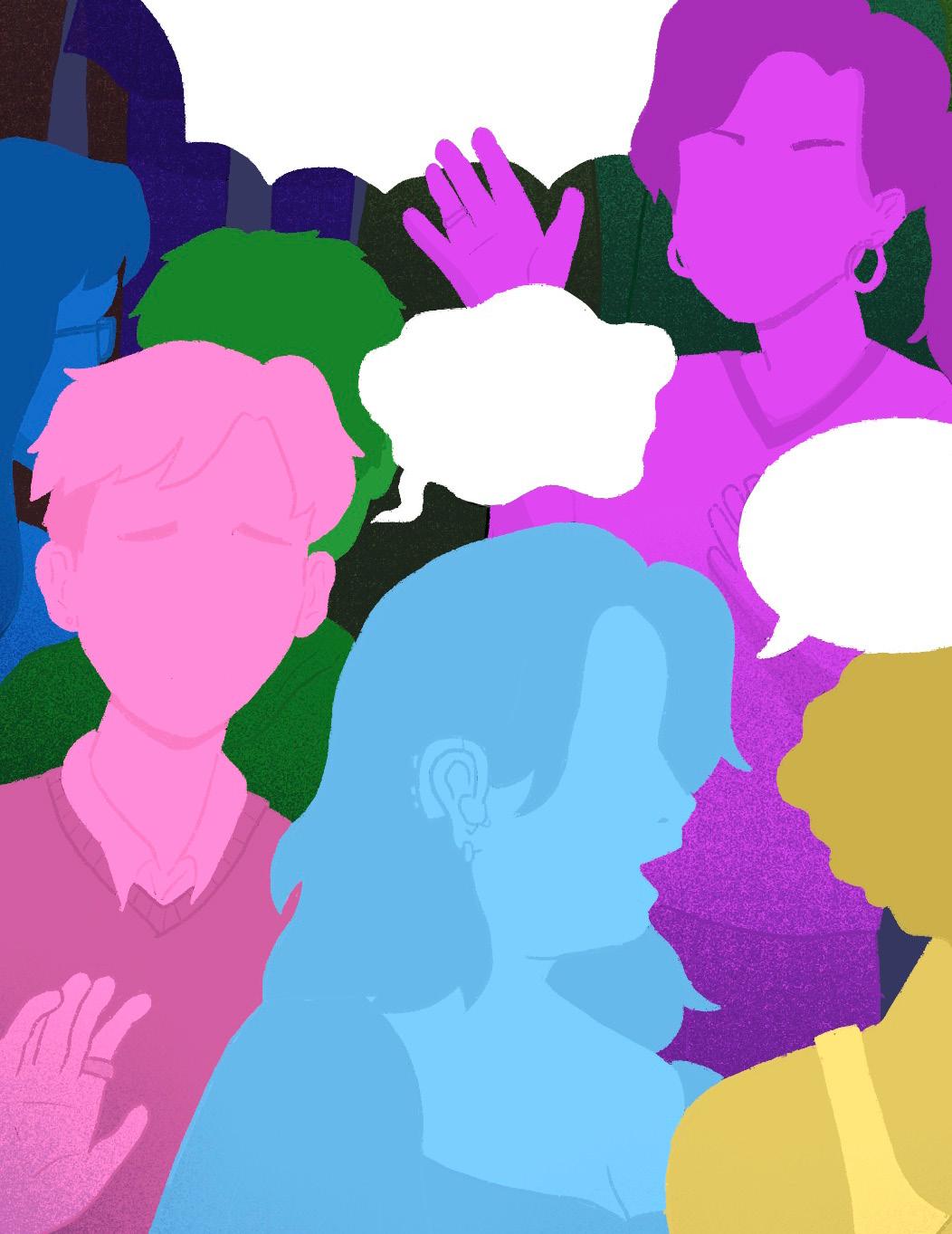 To start the process, I had a video call with Meilynn, the editor-in-chief of NPHR. Initially, we considered the digital landscape of misinformation and incorporated elements of a phone, social media, and newspaper in the sketch. However, the telephone game concept was what we ultimately settled on for the cover. We both felt that it effectively portrayed the theme of this journal, as information getting passed along a chain of people, mutating slightly with each person, is oftentimes the root of misinformation. The written pieces also gave me a better idea of who were common parts of the misinformation chain, so I included some specific characters like scientists, pregnant women, and possible influencers. But anyone can be a participant in the misinformation telephone game.
