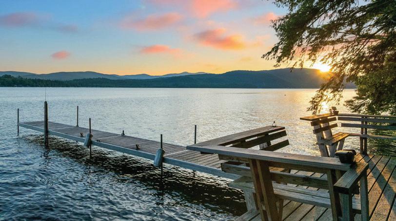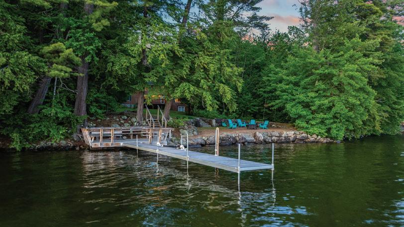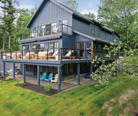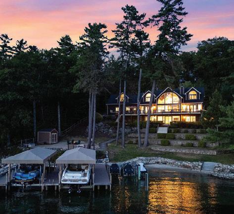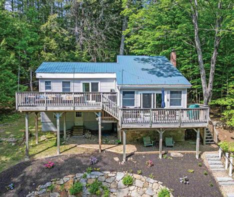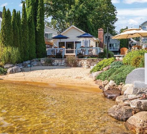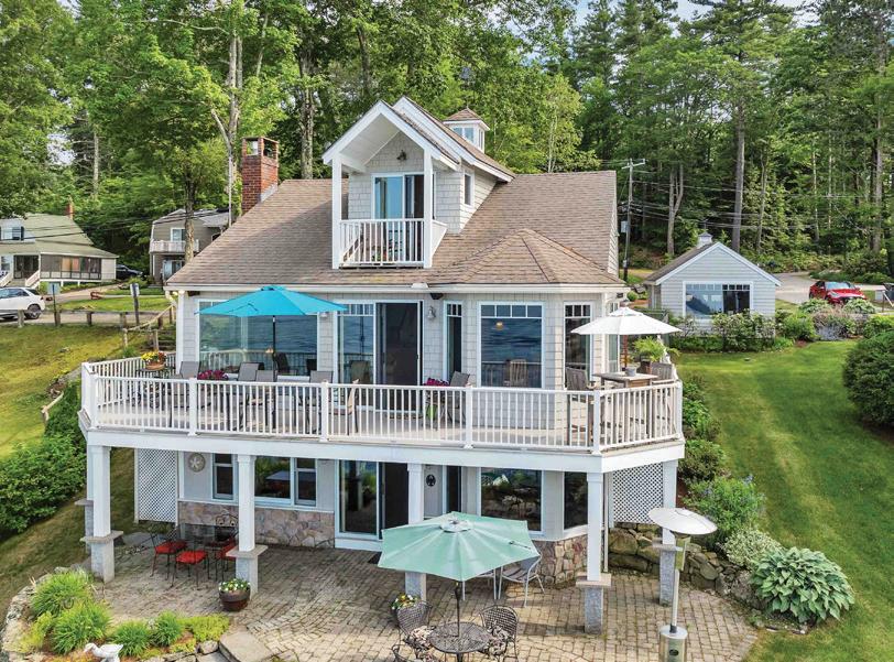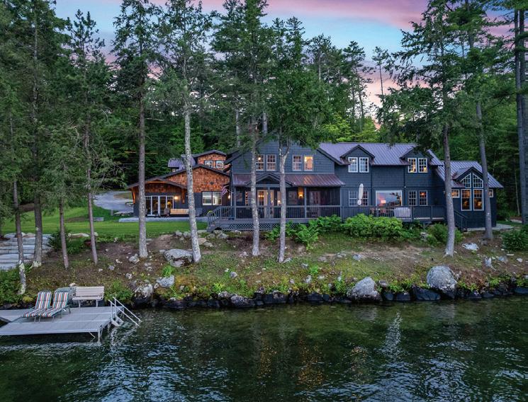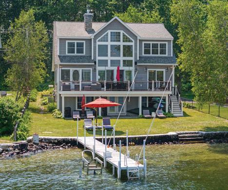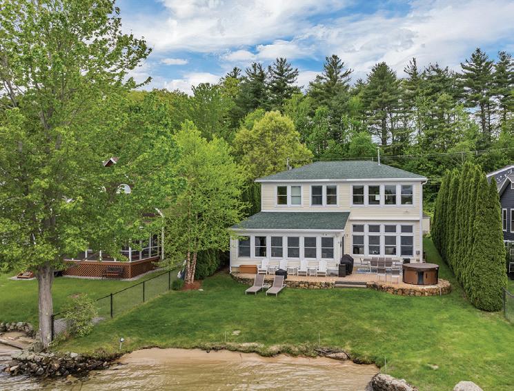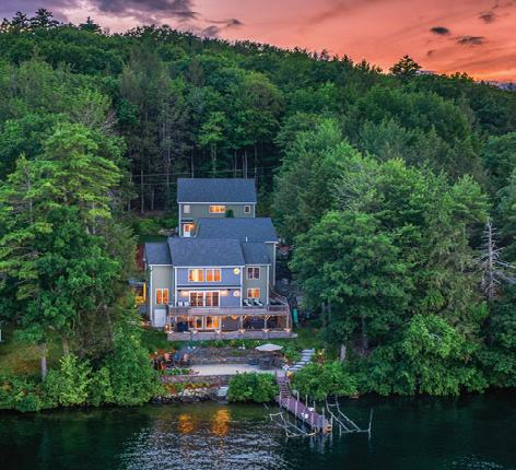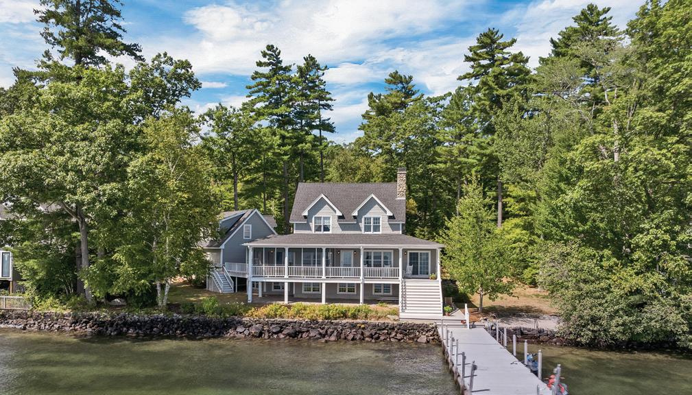 26 LOVEJOY LANE, MEREDITH - $5,495,000 This special home was renovated & enlarged while maintaining the character & details of the original home. 188’ of pristine, waterfront with a rebuilt 2-bay boathouse plus an expansive dock. Newly constructed main level Primary Suite with fireplace, walk-in closet and spa-type bath. The second level in the original home has 3 bedrooms including an en-suite. New attached drivethrough garage is finished with a 2-bedroom suite.