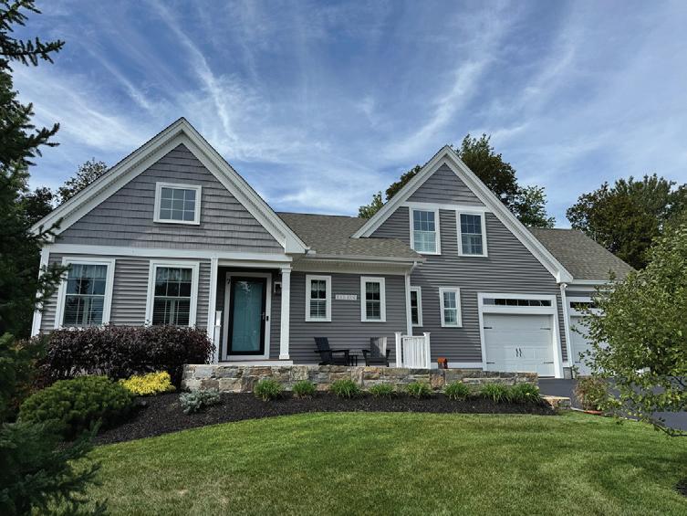 288 STERLING DRIVE, LACONIA - $789,000 This beautifully crafted home in the sought-after Phase 2 of Governor’s Crossing is movein ready. The main level features a spacious primary suite. The Great Room impresses with its soaring ceiling, natural stone gas fireplace, and stylish plank flooring. The kitchen offers an island with elegant quartz countertops. Upstairs, two spacious bedrooms share a full bath, and there’s walk-in storage.