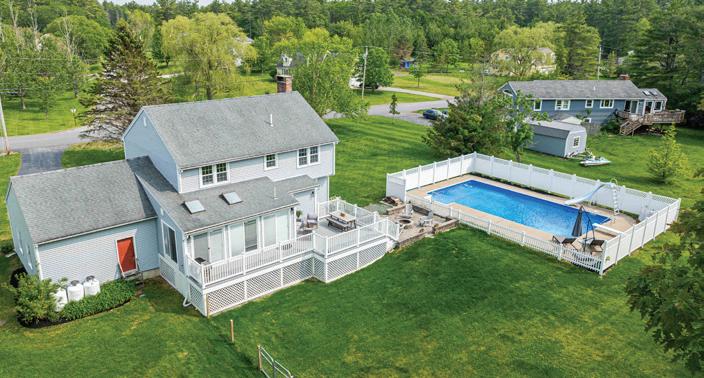 19 KNOLLWOOD DRIVE, GILFORD - $1,198,000 On a beautifully landscaped, level lot, this 4-bedroom colonial with heated pool and game room is spectacular. The second level, accessible by two stairways, offers a primary suite and second en-suite bedroom, which adds additional comfort and functionality. The kitchen is a true centerpiece of the home designed for both function and style. Hardwood floors in the living and dining rooms.